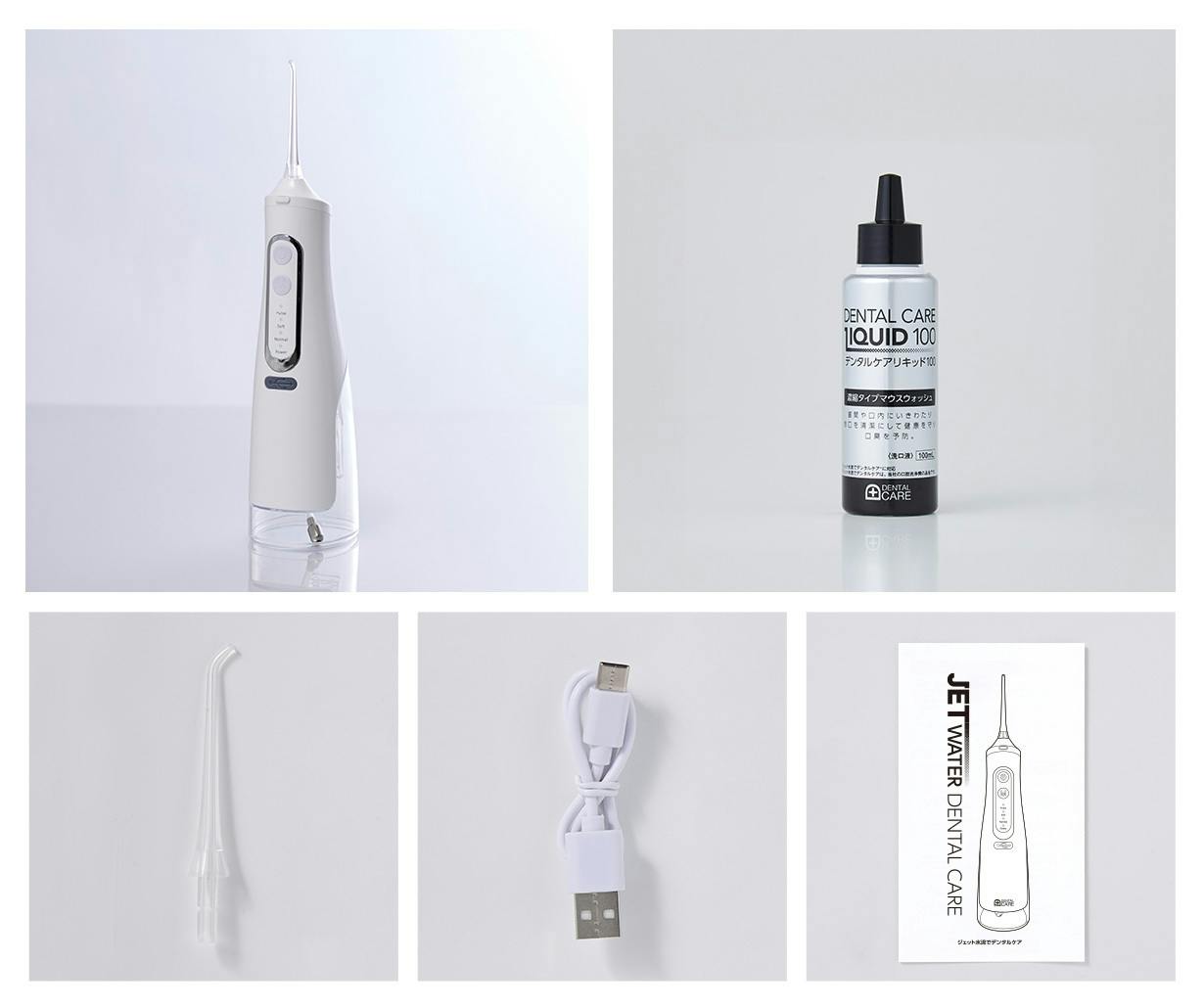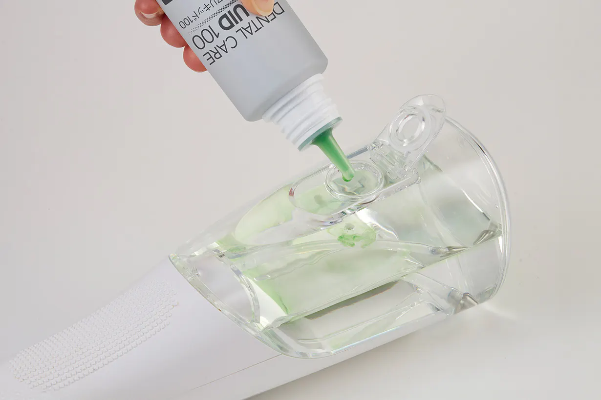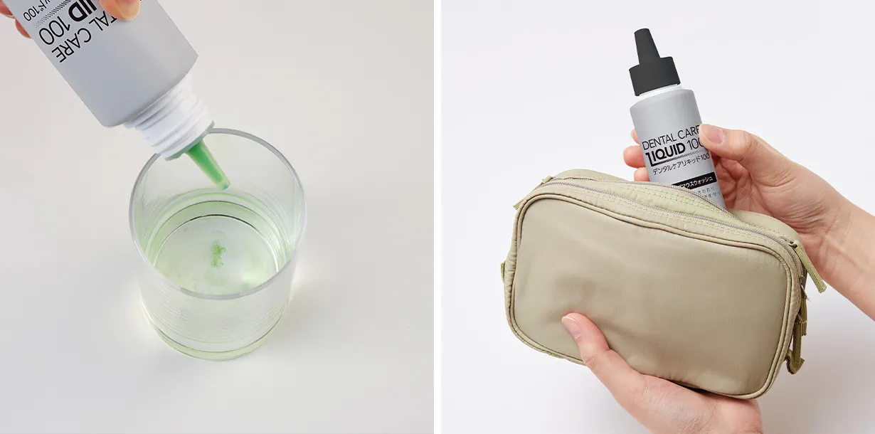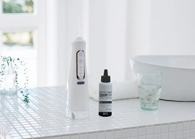 付属の「デンタルケアリキッド100」☓1本(洗口液)は濃縮タイプのマウスウォッシュ。お好みの濃さに調整でき、お口を清潔にします。