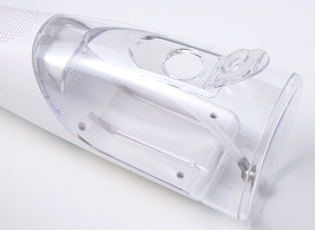 「ジェット水流でデンタルケア」本体ボディーは、洗口液成分の影響を受けないソルベントクラック対策の樹脂を採用しました。