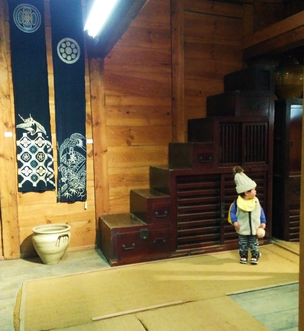 写真は、出雲民芸館にいる長男です。2歳頃だと思われます。この頃は、ちょうど 別冊太陽の「婚礼」という雑誌に出会い、そこに登場した山本家の婚礼道具を一目見たいと思い、民芸館に突撃。しかし、山本家の婚礼道具は民芸館にはもちろんなく、非公開だったのでした。
