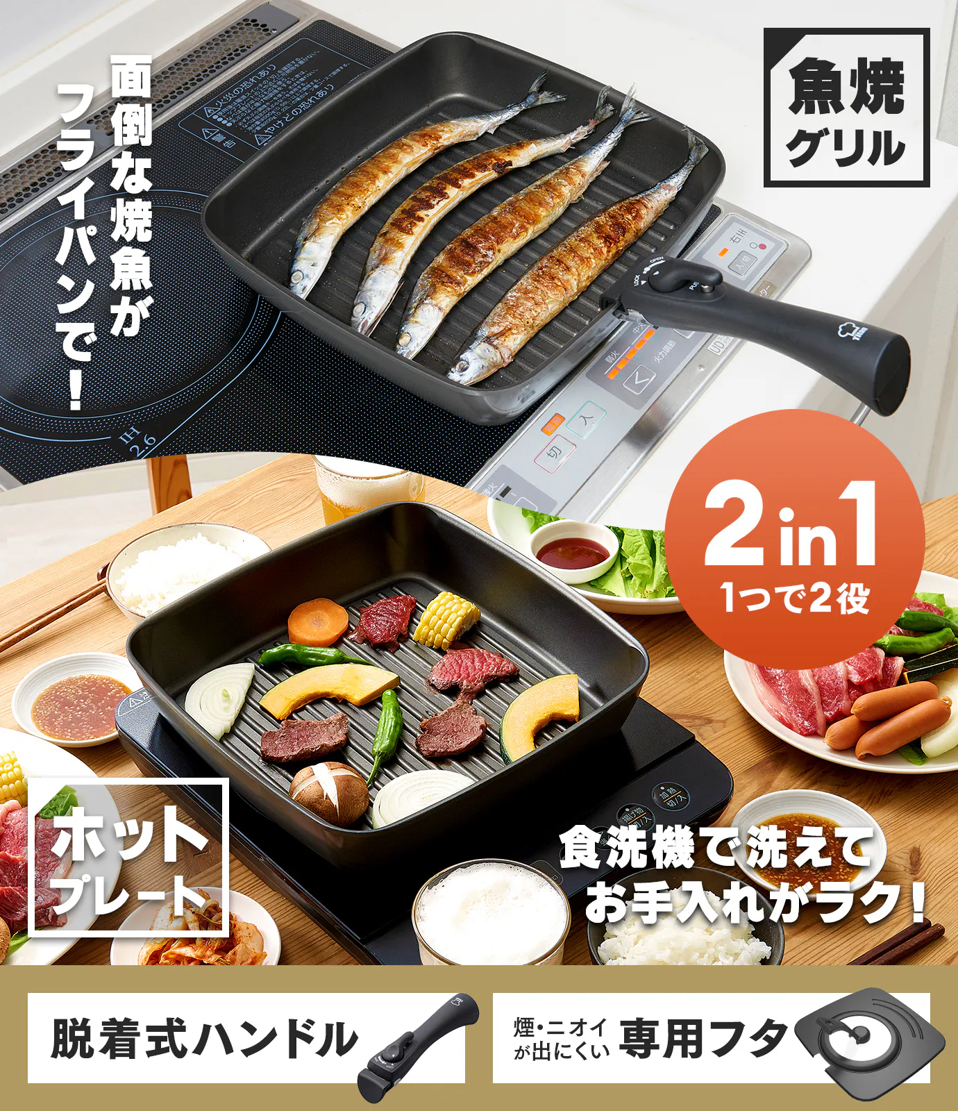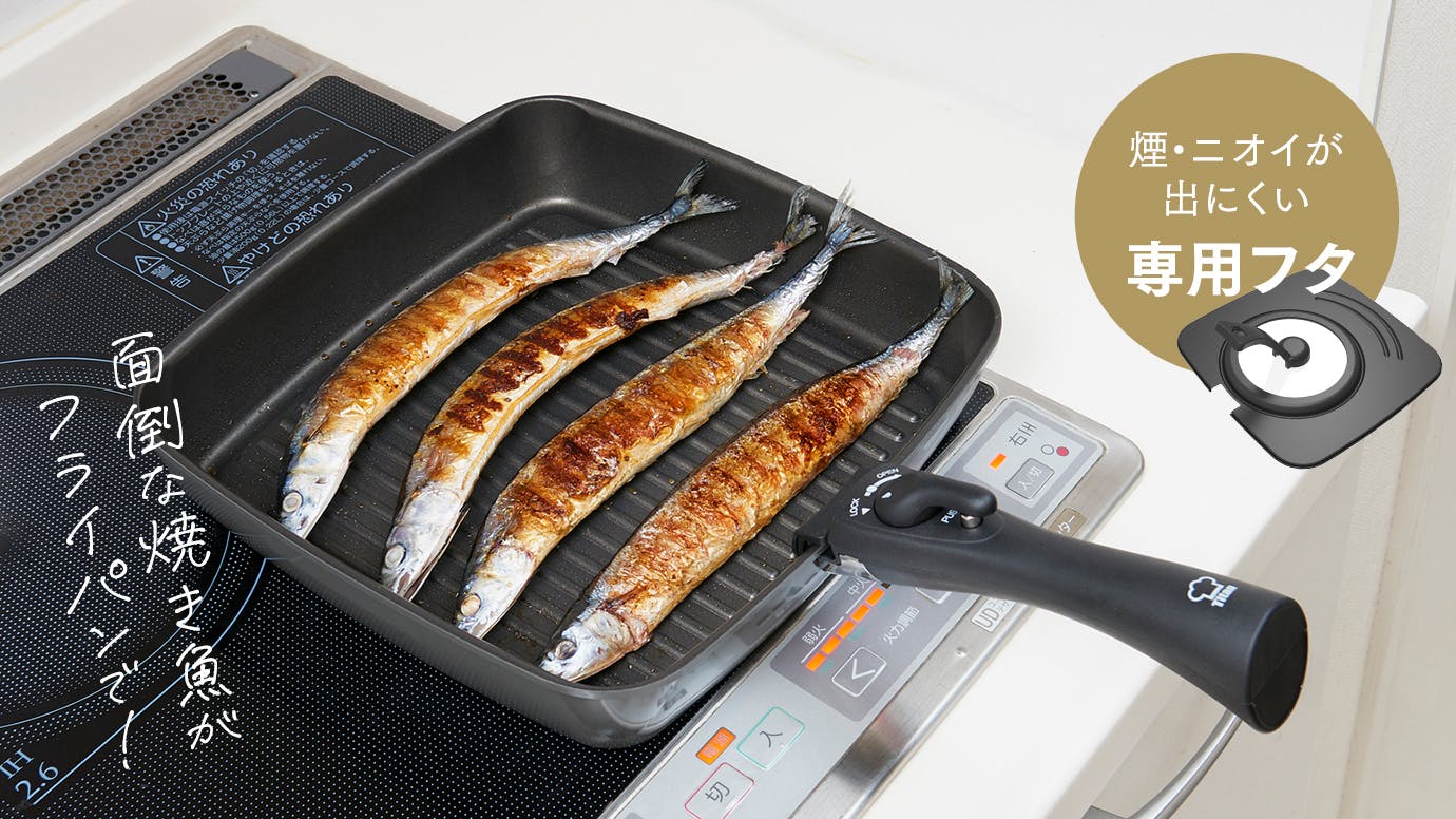 調理後の片付けが面倒な調理器具2トップといえば、魚焼きグリルとホットプレート。その二つの調理を可能にしたスクエア型フライパンで、そんなお悩みを解決します!