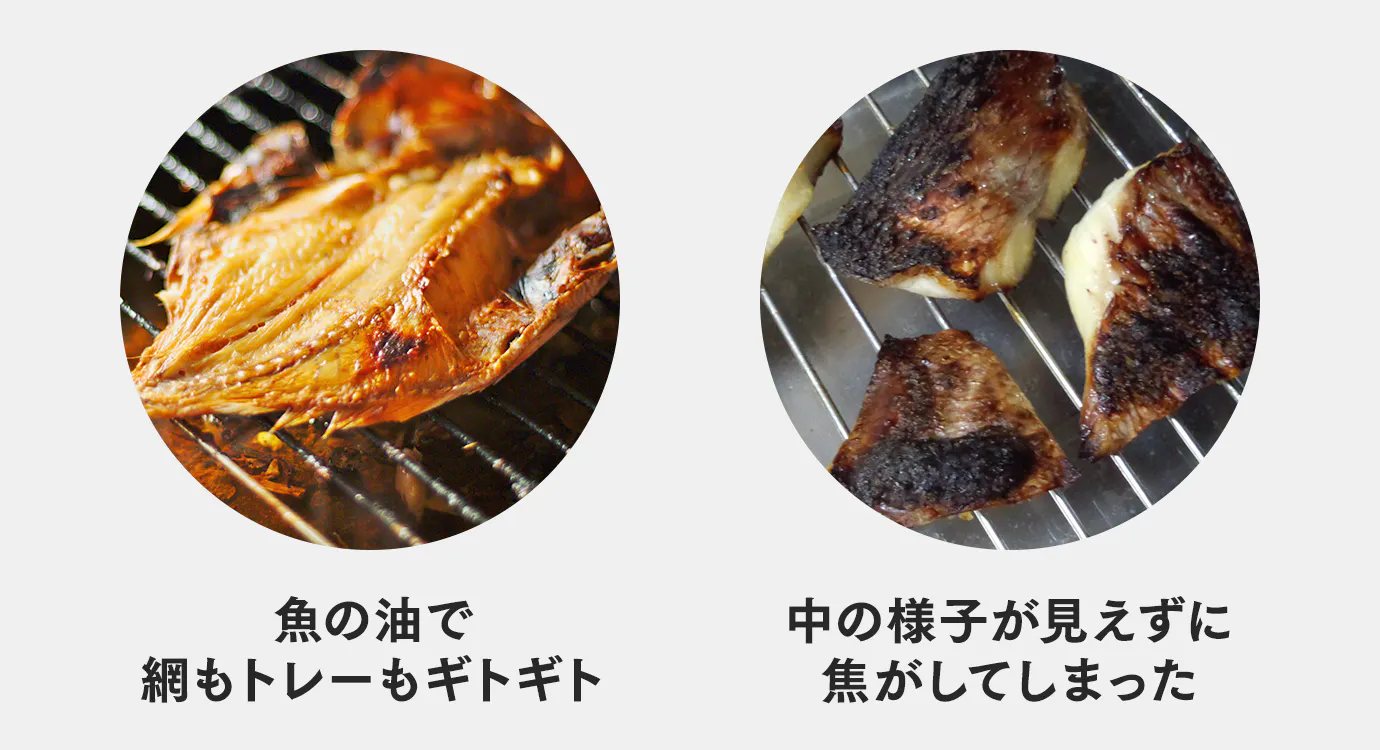 魚焼きグリルは魚を美味しく調理できる一方で、掃除や片付けが面倒、焼け具合がよく見えないから魚を焦がしてしまった、煙やニオイが気になるなどのデメリットも。