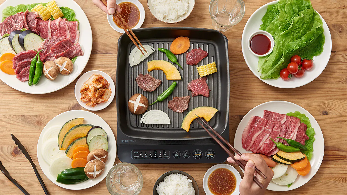 簡単に持ち運びができるから、お庭やベランダで焼肉を楽しむことも!ガスコンロを使えばコンセントがない場所でも焼肉を楽しめます。家族との団らんや友人たちとのパーティーに大活躍間違いナシ!