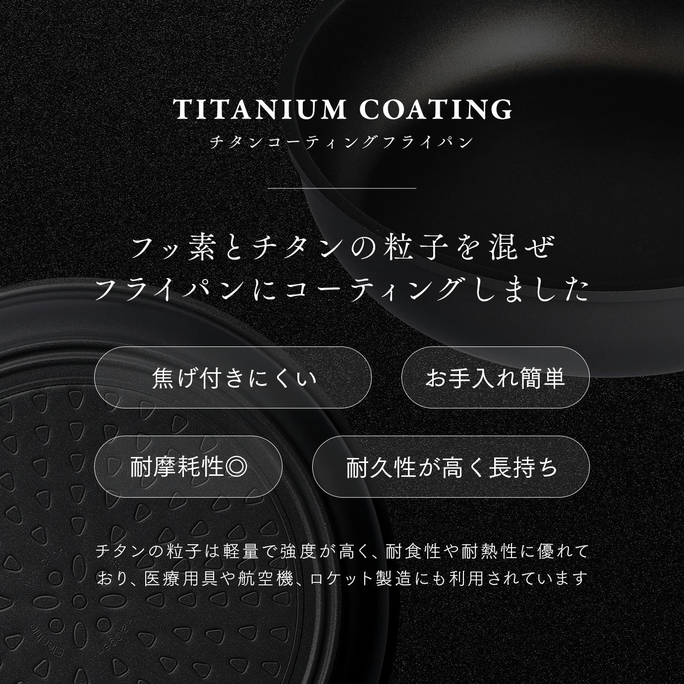 軽量で強度が高いチタンの粒子を使用した「チタンシェフフライパンシリーズ」