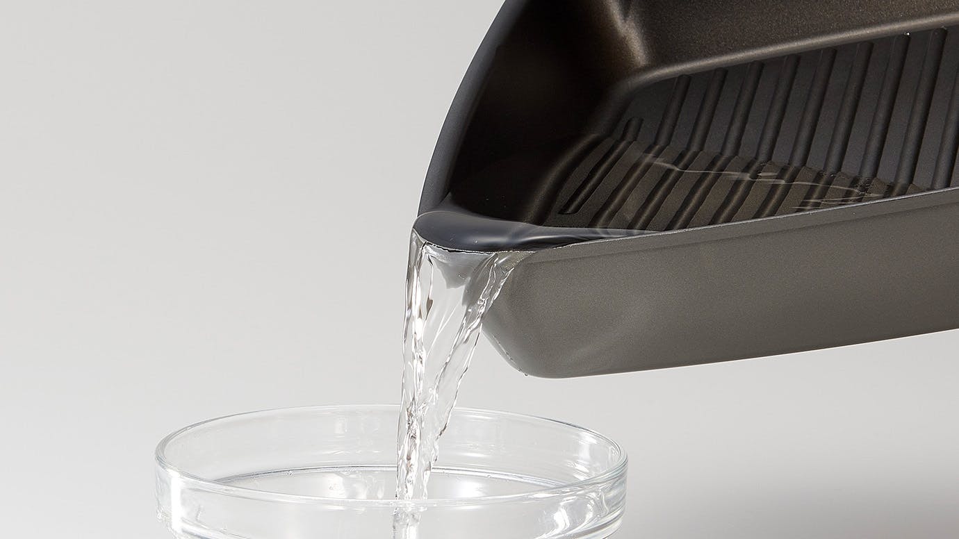 多層コーティングしてあるので、焦げ付きにくくお手入れも簡単。水を流すだけでスルリと簡単に洗い流せます。