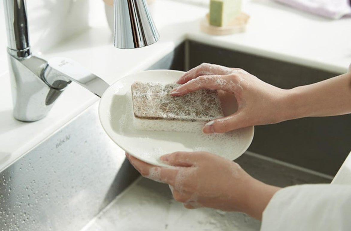 ・スポンジ×2:ココナッツの皮と植物性セルロースから作られた天然由来のスポンジです。よく料理をするご家庭では1ヶ月に1度の交換を推奨しており、消耗品ですが、100%生分解性素材で作られているため環境に配慮されています。