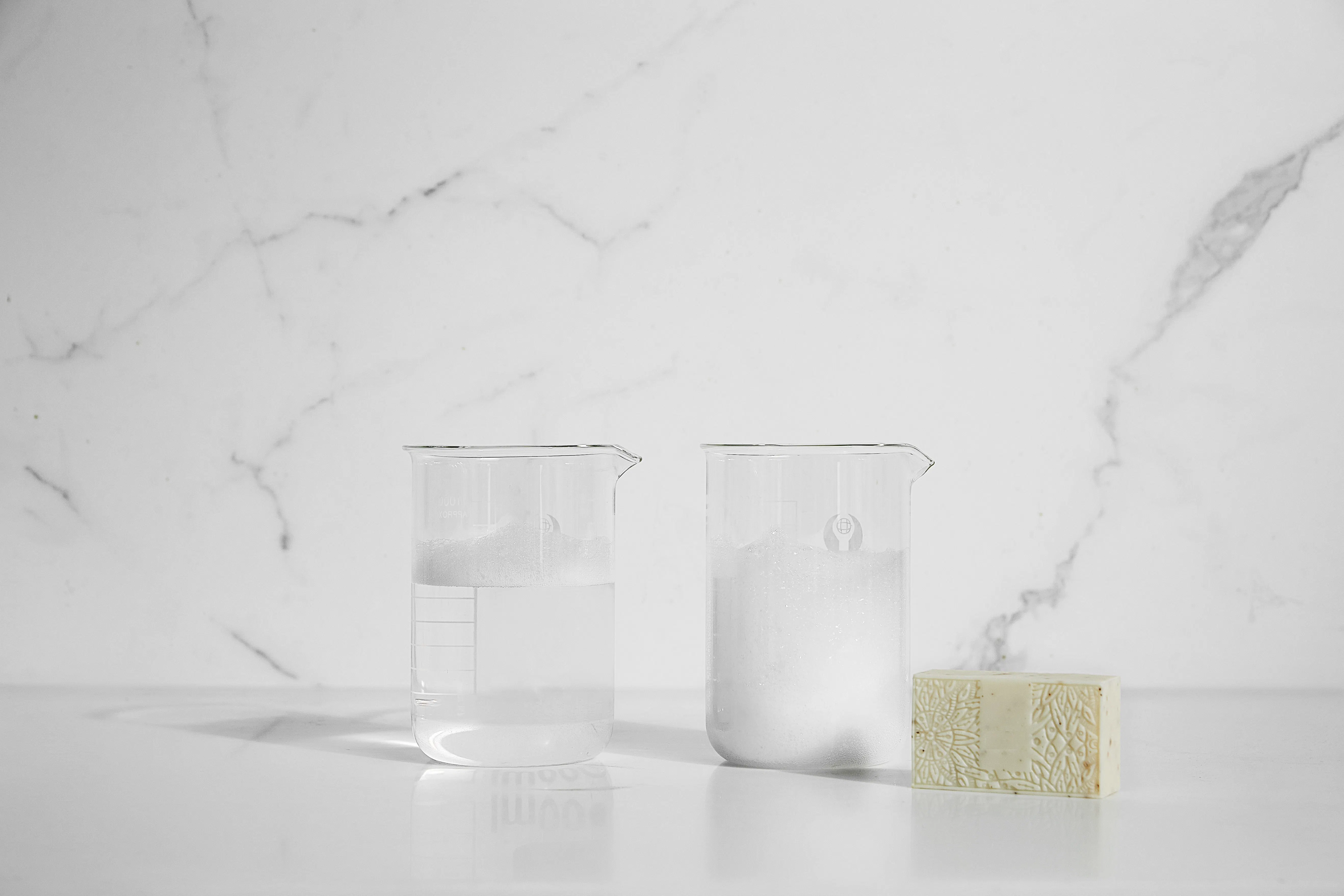 泡立ち比較 左が一般的な液体洗剤 右が本製品