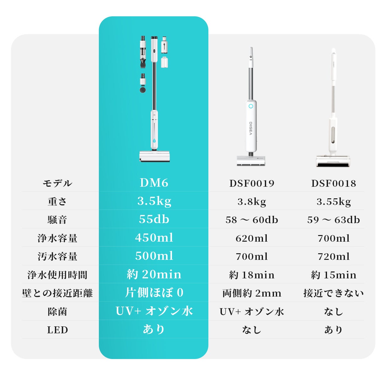旧バージョンと比べると、DM6 は掃除の快適さを向上し、床だけではなく、家全体の掃除に向けて進化していました!