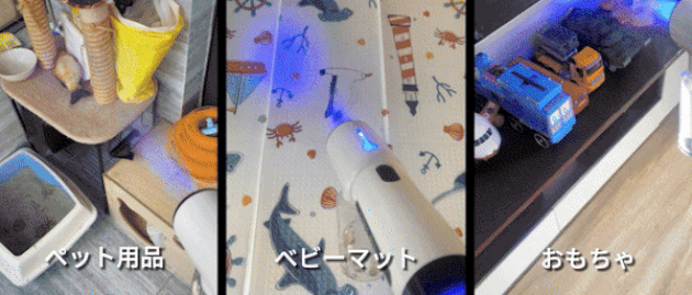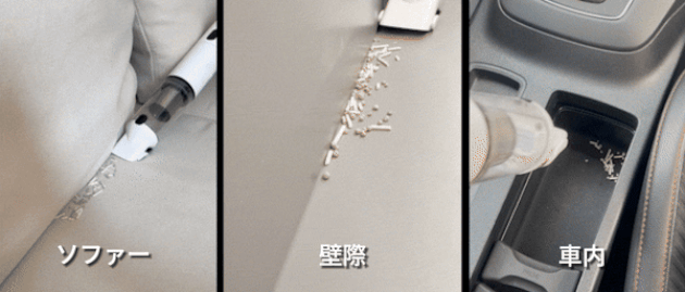12kpa吸引力、家の掃除はもちろん、車内にも使え、隅っこの埃を逃さません。
