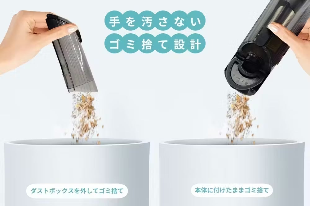 小さなゴミやサッと捨てたい場合は本体に付けたまま。大きなゴミやしっかりと中身を掃除したい場合は取り外してゴミ捨てすることができます。
