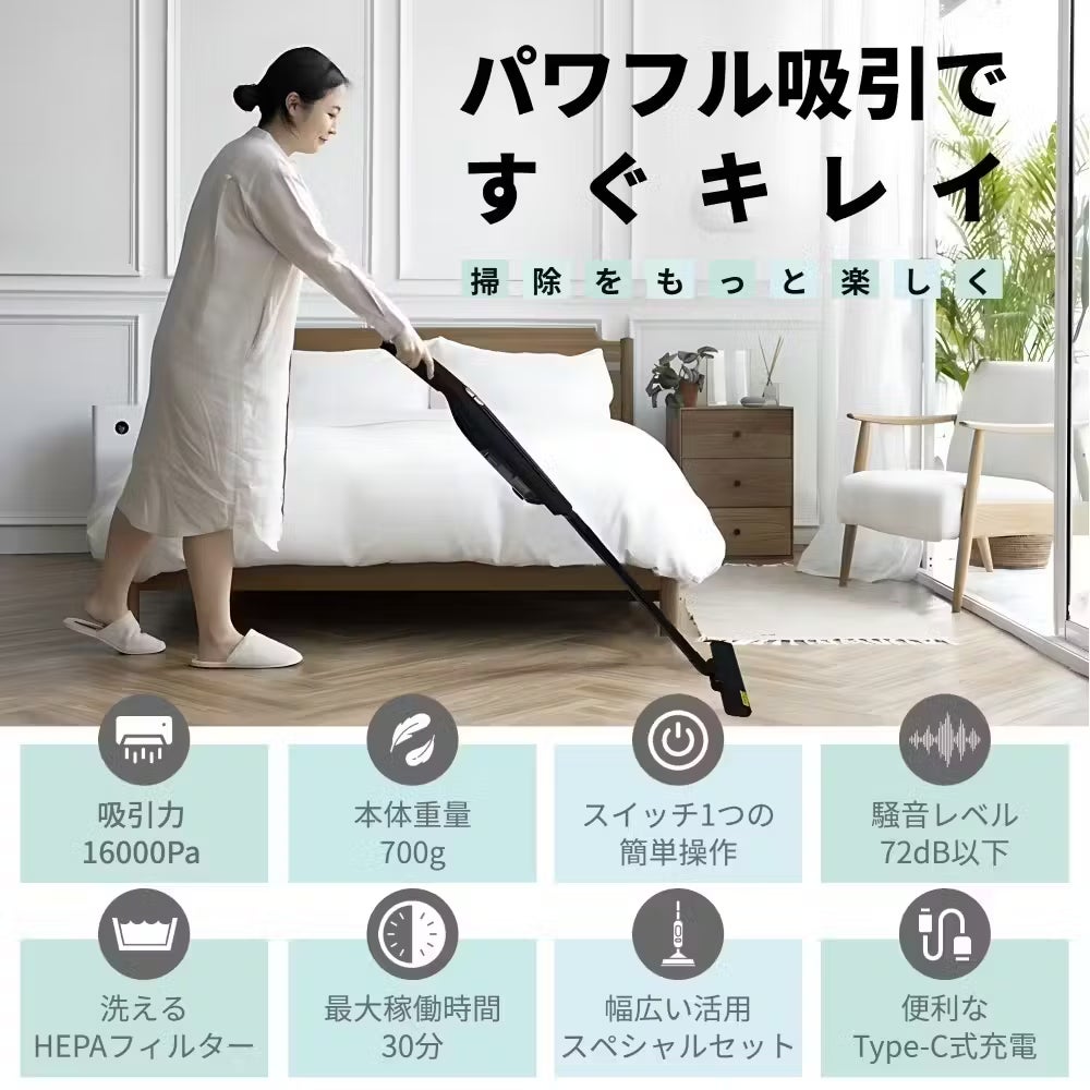 強力吸引力:16000Paのハイパワーモードで、頑固な汚れも一掃。