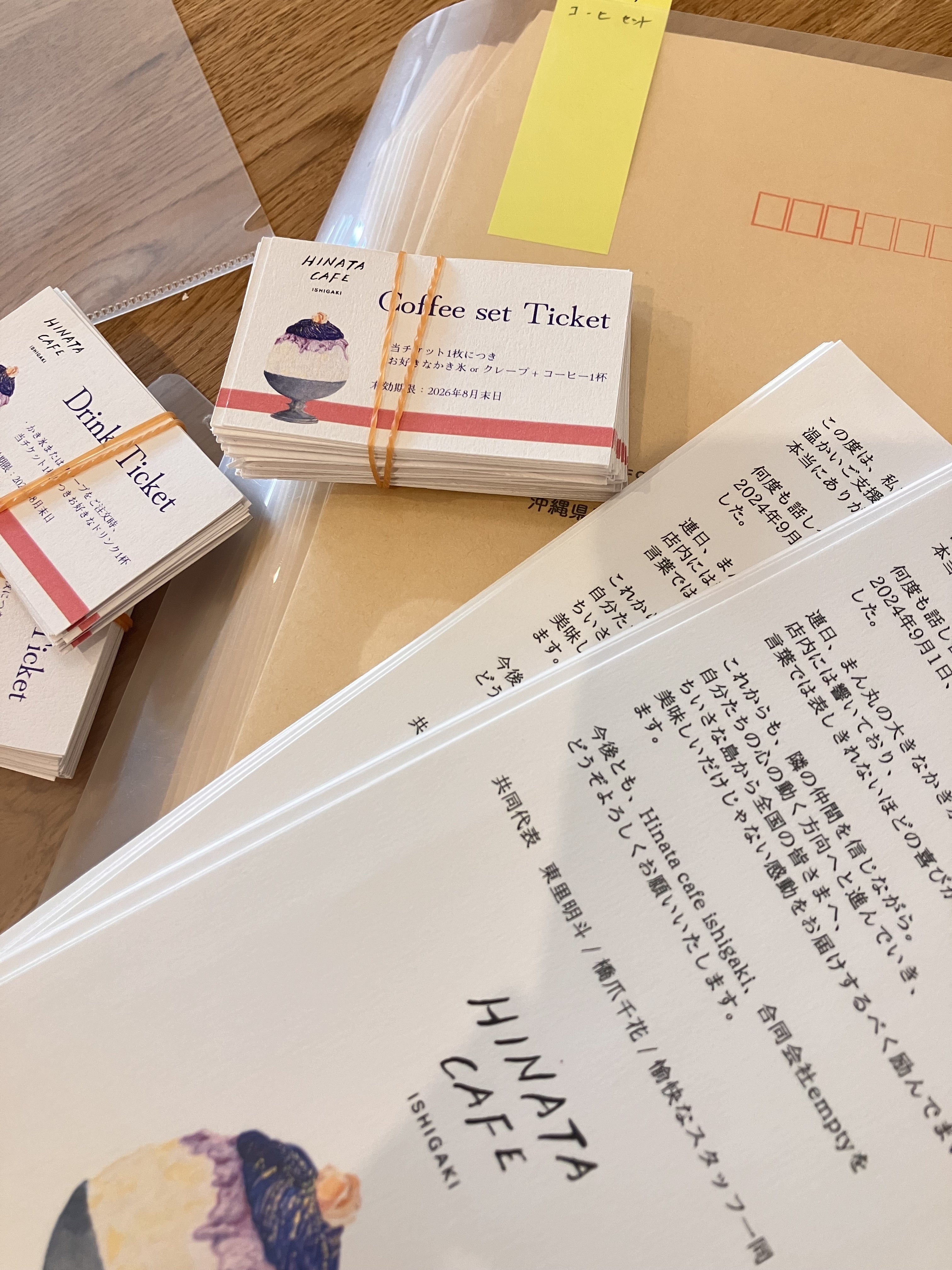 [ Hinataのドリンク券2枚 / CF支援者限定スタンプカード / Hinata cafeステッカー]