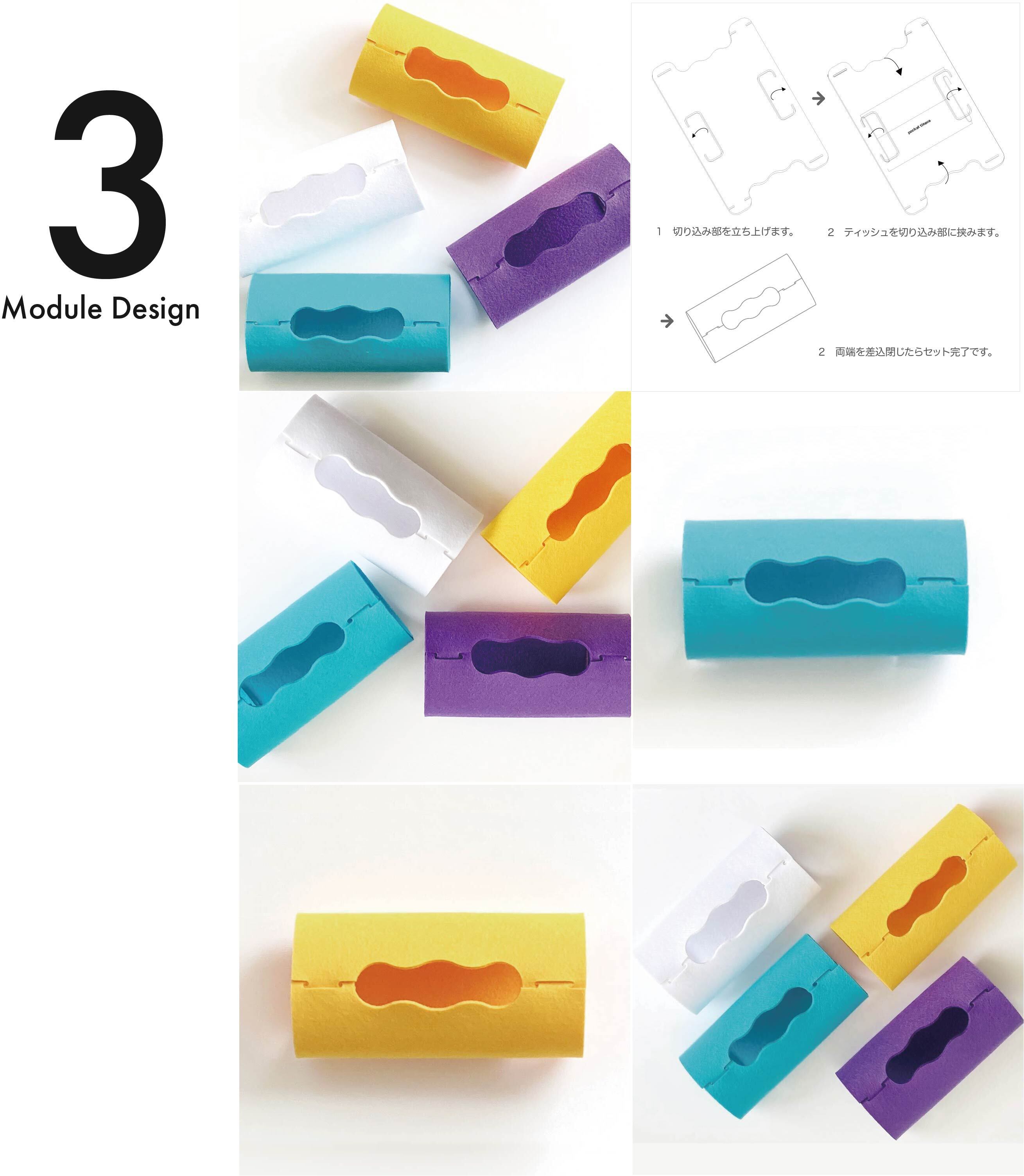 1枚のフェルトを折りたたみスナップボタンでとめることによりフェルトの力でできたカタチです。手の中でふくらむような心地よいボリューム感です。ティッシュをセットし易く、取出し易い機能、そして清潔を保つようウォッシャブルフェルトを採用しています。