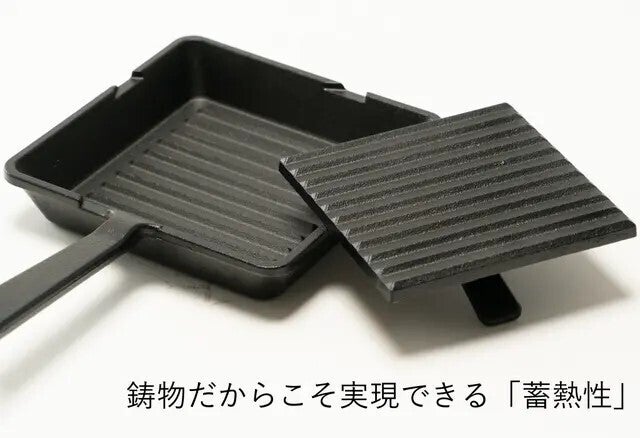 鋳物特有の蓄熱性と、プレスして焼くという新しい焼き方を実現した「PRESS GRILLPAN」