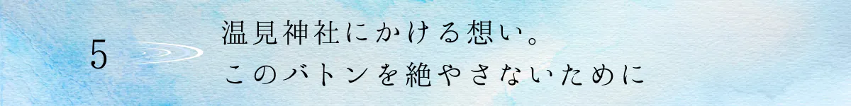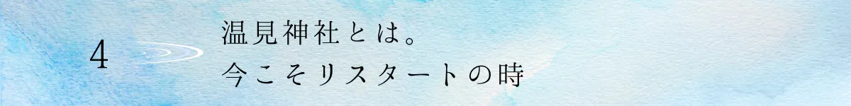 長きにわたり、この温見神社を守ってきてくださった先人、そして地域の方々のためにも、今こそリスタートのときと考えております。