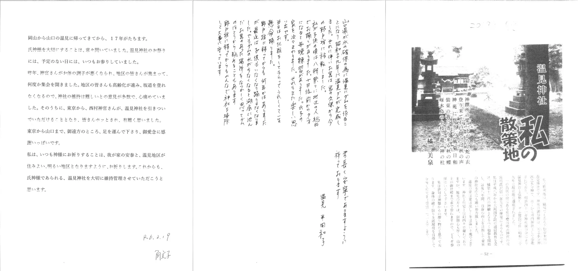 温見神社前宮司や、氏子代表、氏子の方々から温見神社への想いを綴ったお手紙を頂きました。