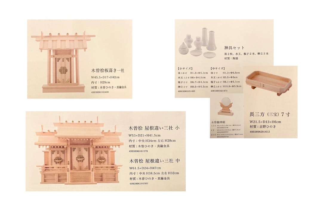 *神具セット、木曽檜神鏡、長三方を含んでおります。