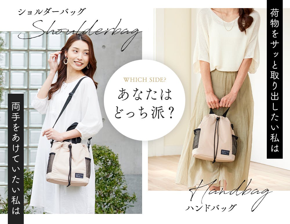 デイリーやレジャーにも使いやすい、選べる2WAYデザイン