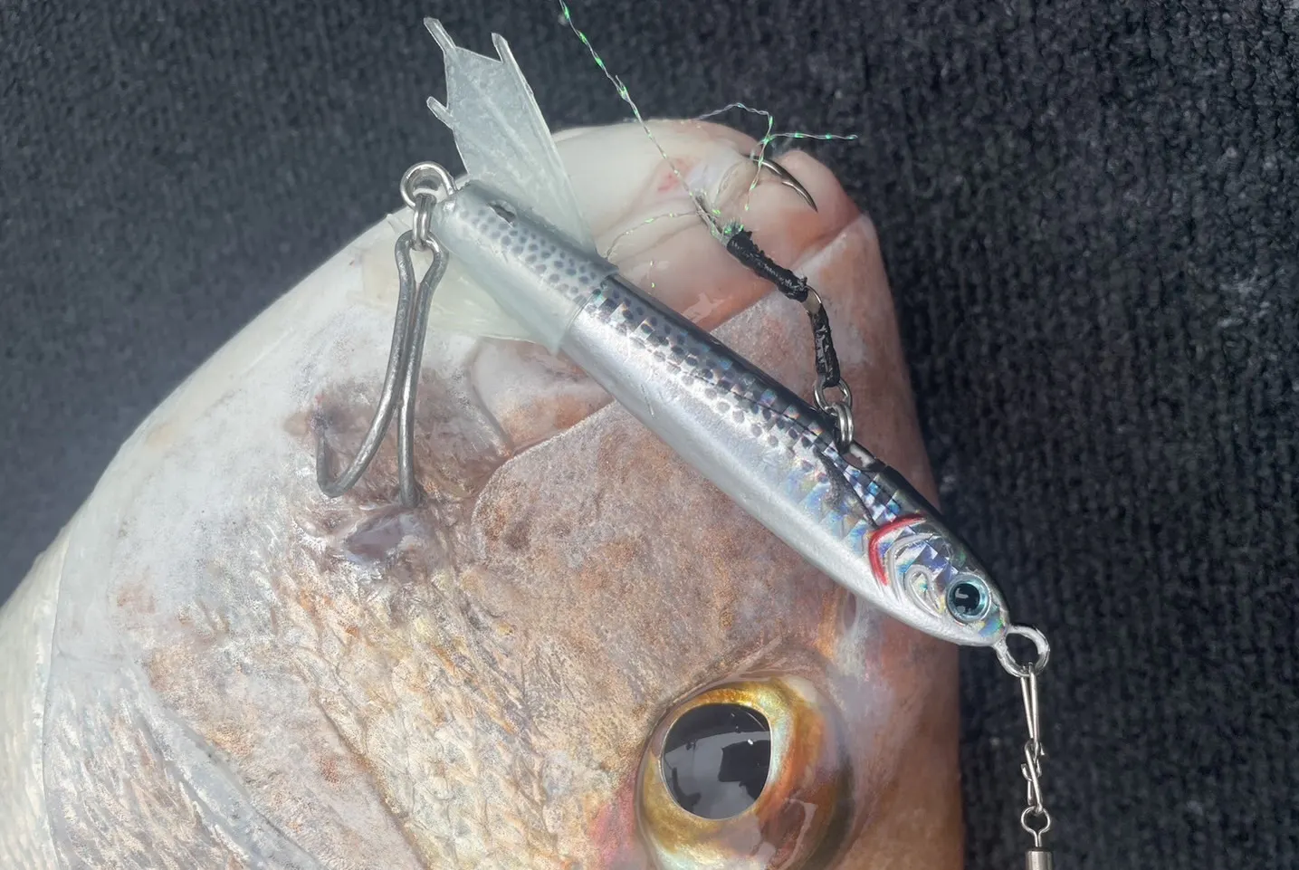 ・違和感ないのか、サワラ、フグ、マダイなどによく噛まれます。噛まれちゃうと欠損します、悪しからず🙇♂️