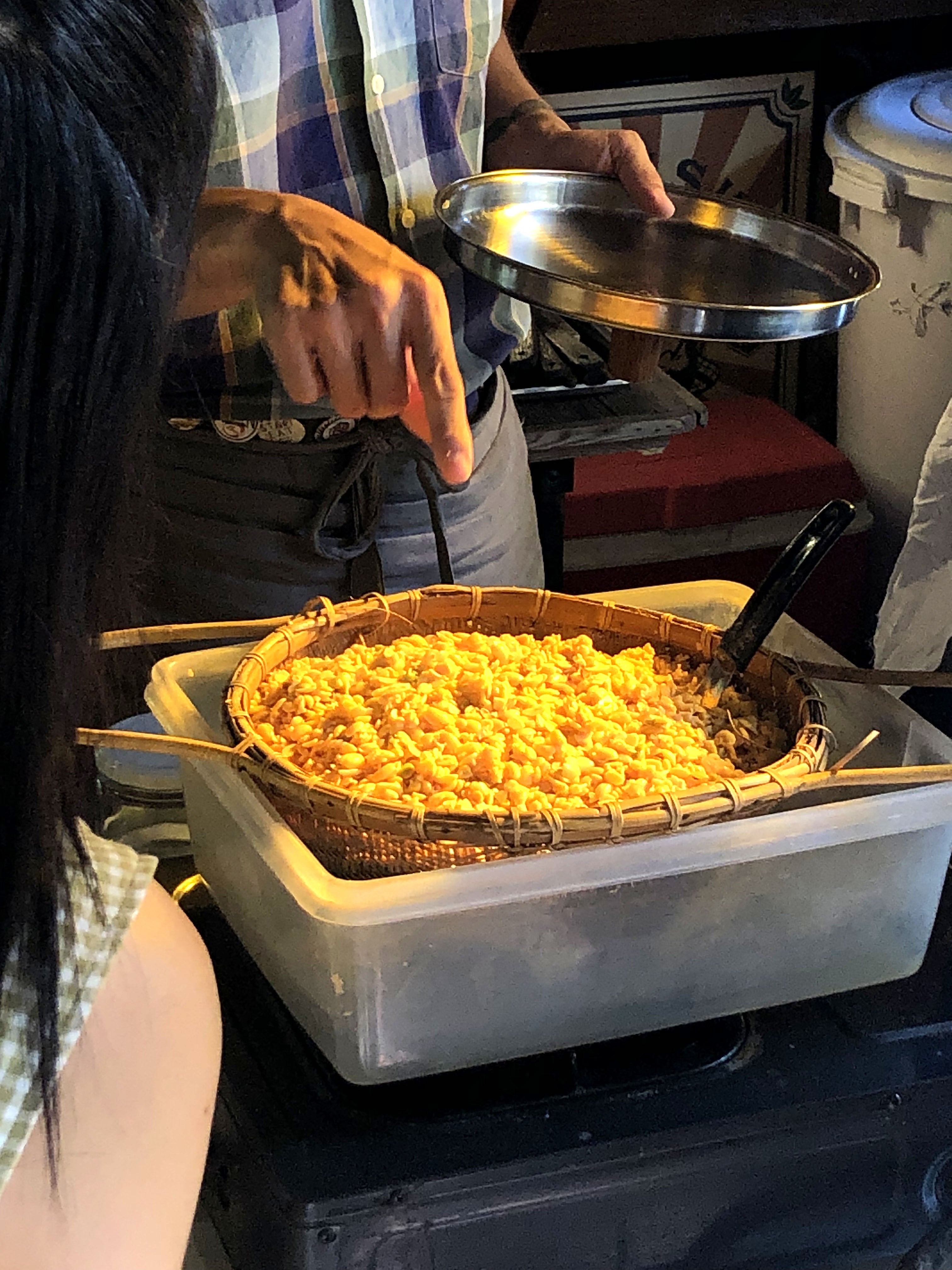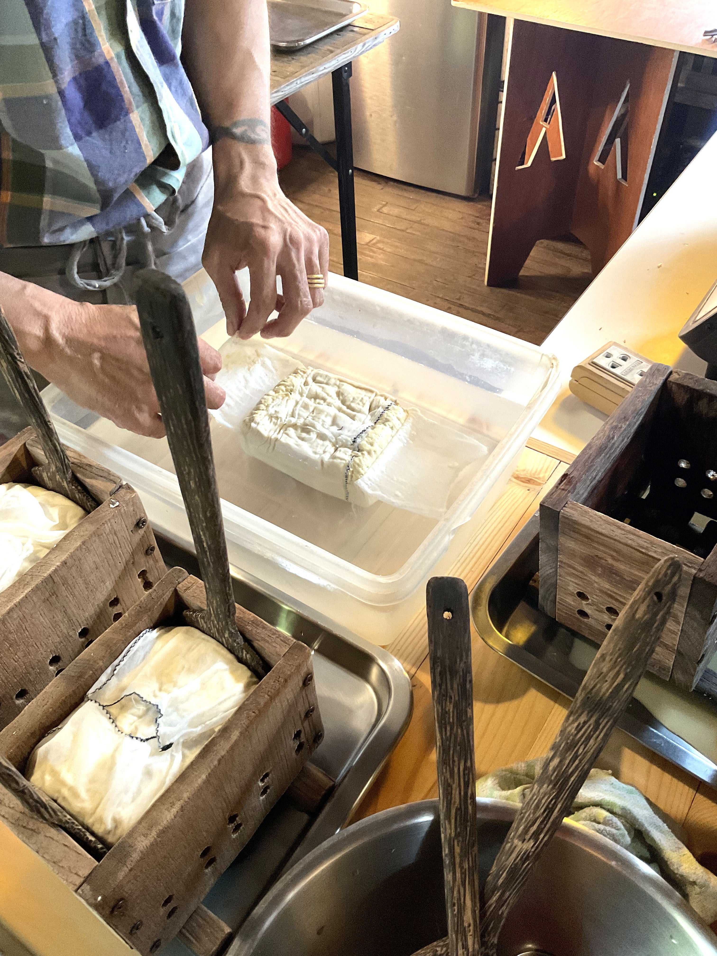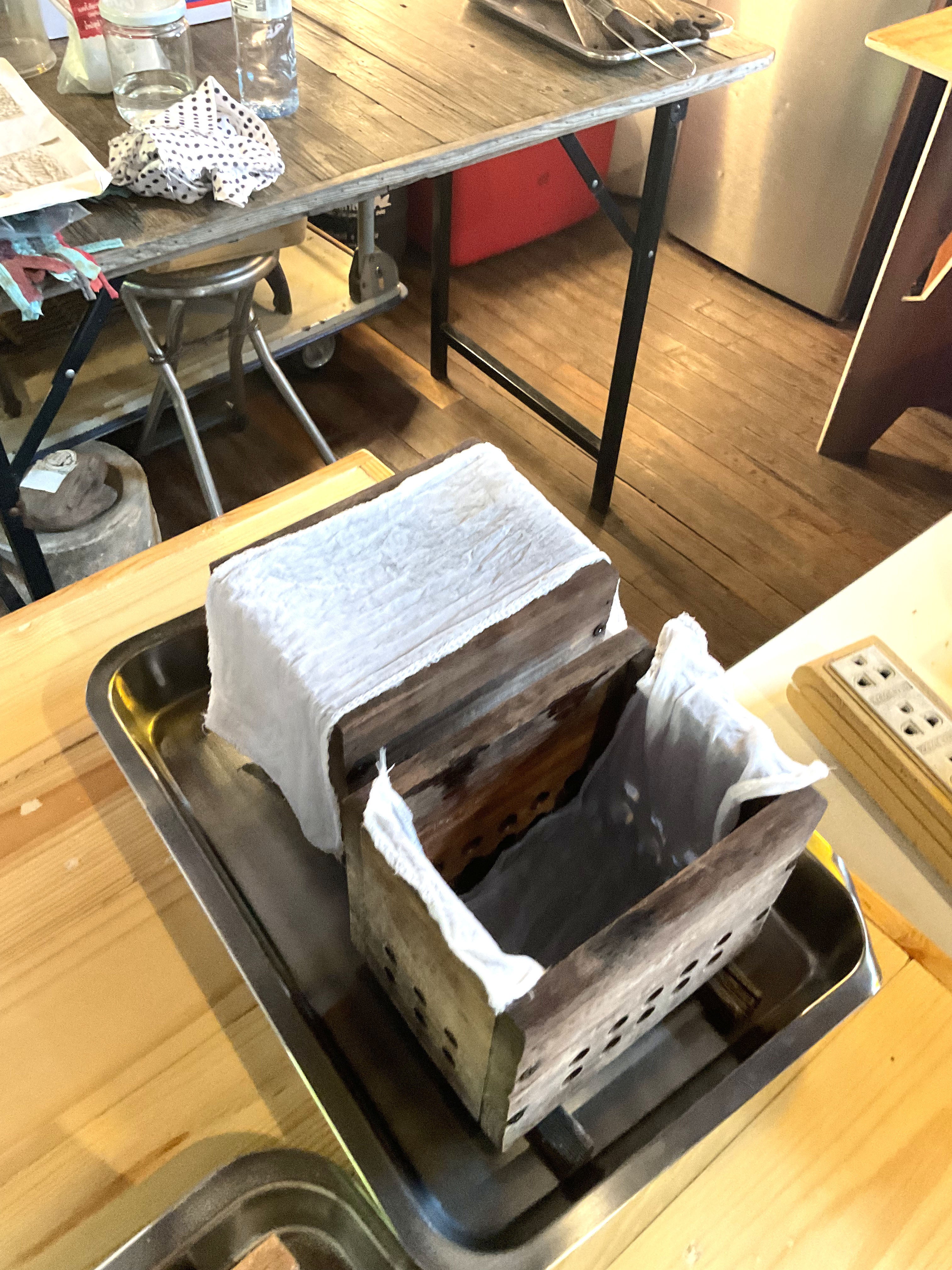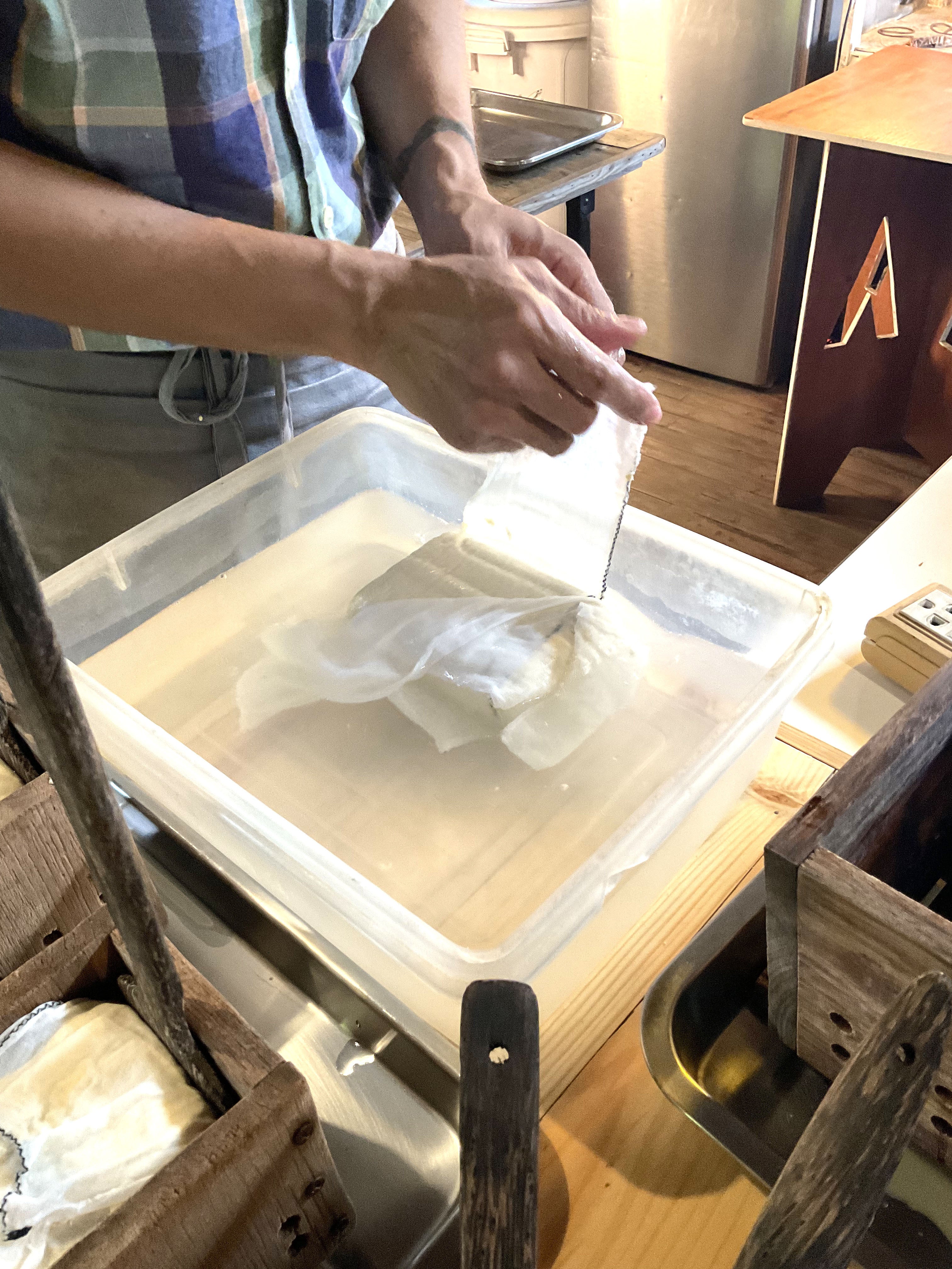 蓋をすること(時には重しを置く事も)で豆腐から水が抜けていき...豆腐の表面にはその布目が付き...形が整っていきます□