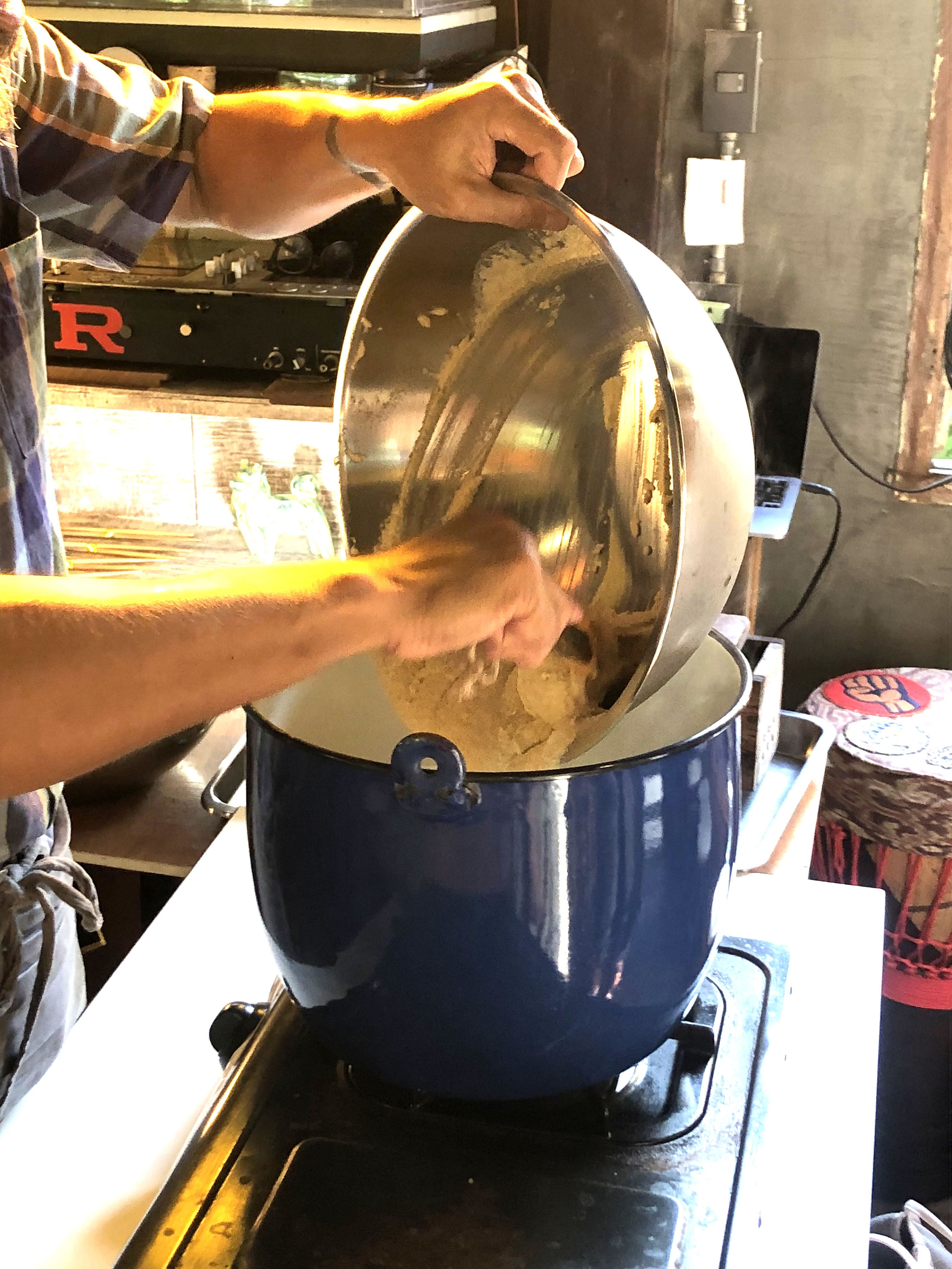 そして次はこの"生呉(なまご)"を計算された水の量と合わせて煮ていきます→→→