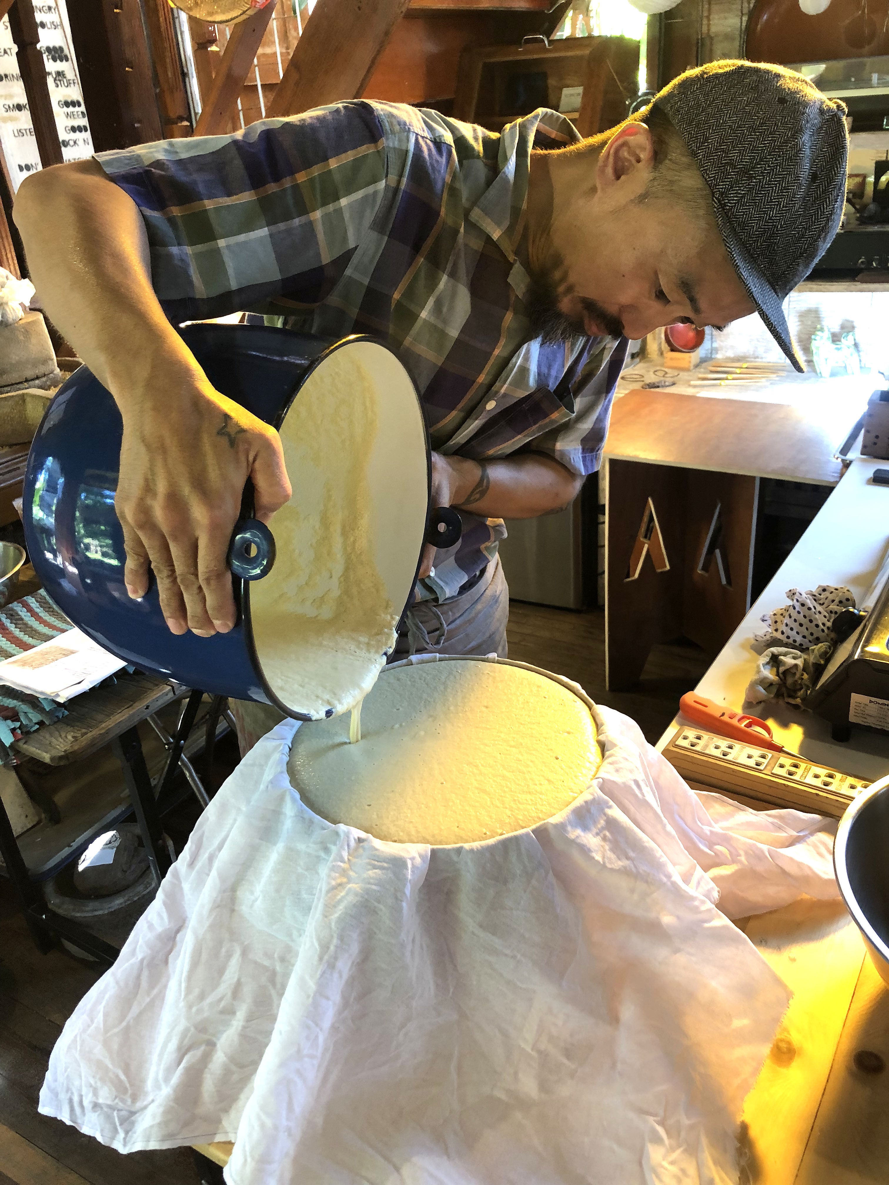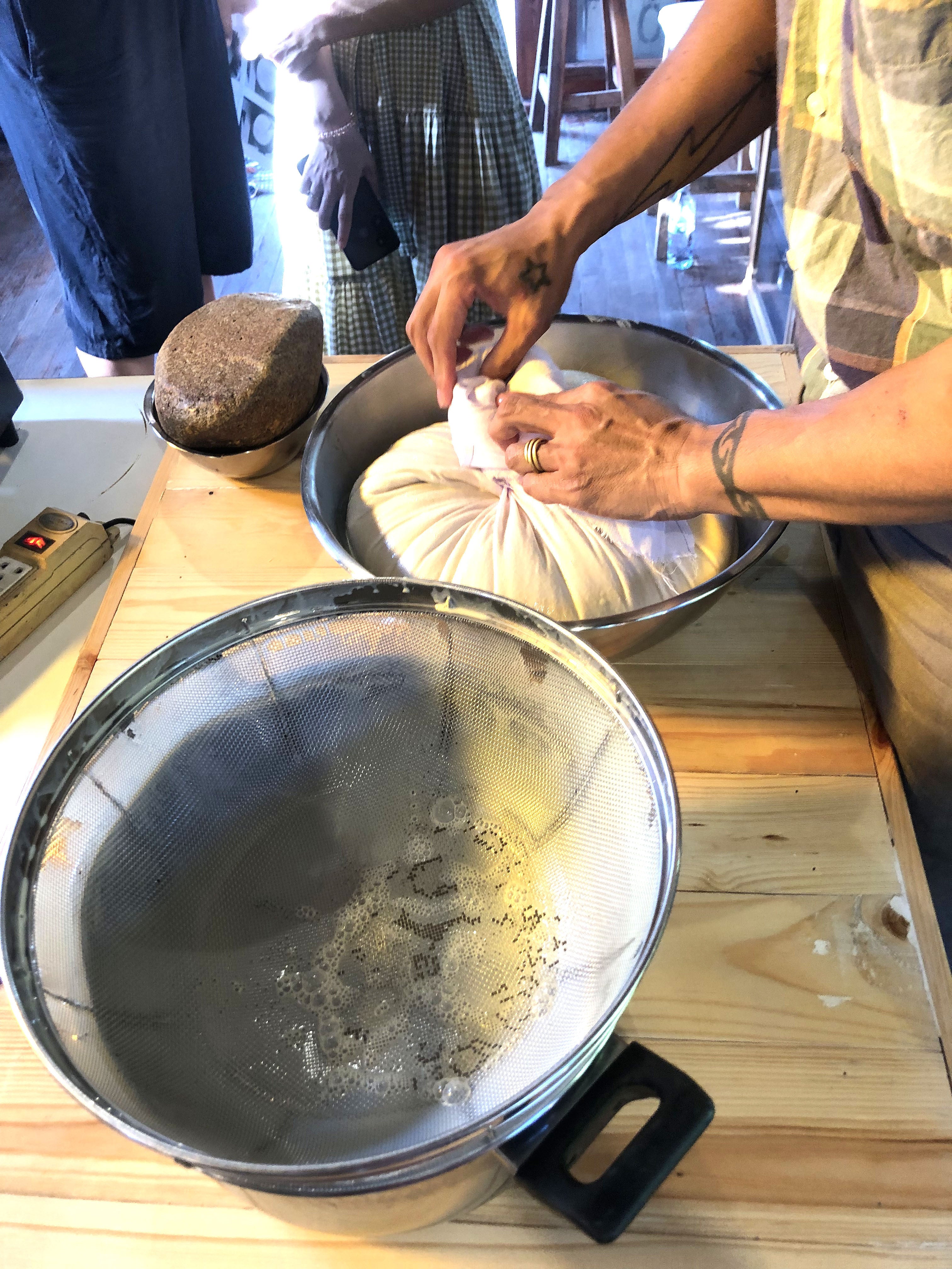 (この工程だけ機械を使うのですが...参加者が家庭に戻って豆腐をつくると言うのが目標なのでこの工程は致し方ないと...)昔はここでも石臼を使っていたようです★