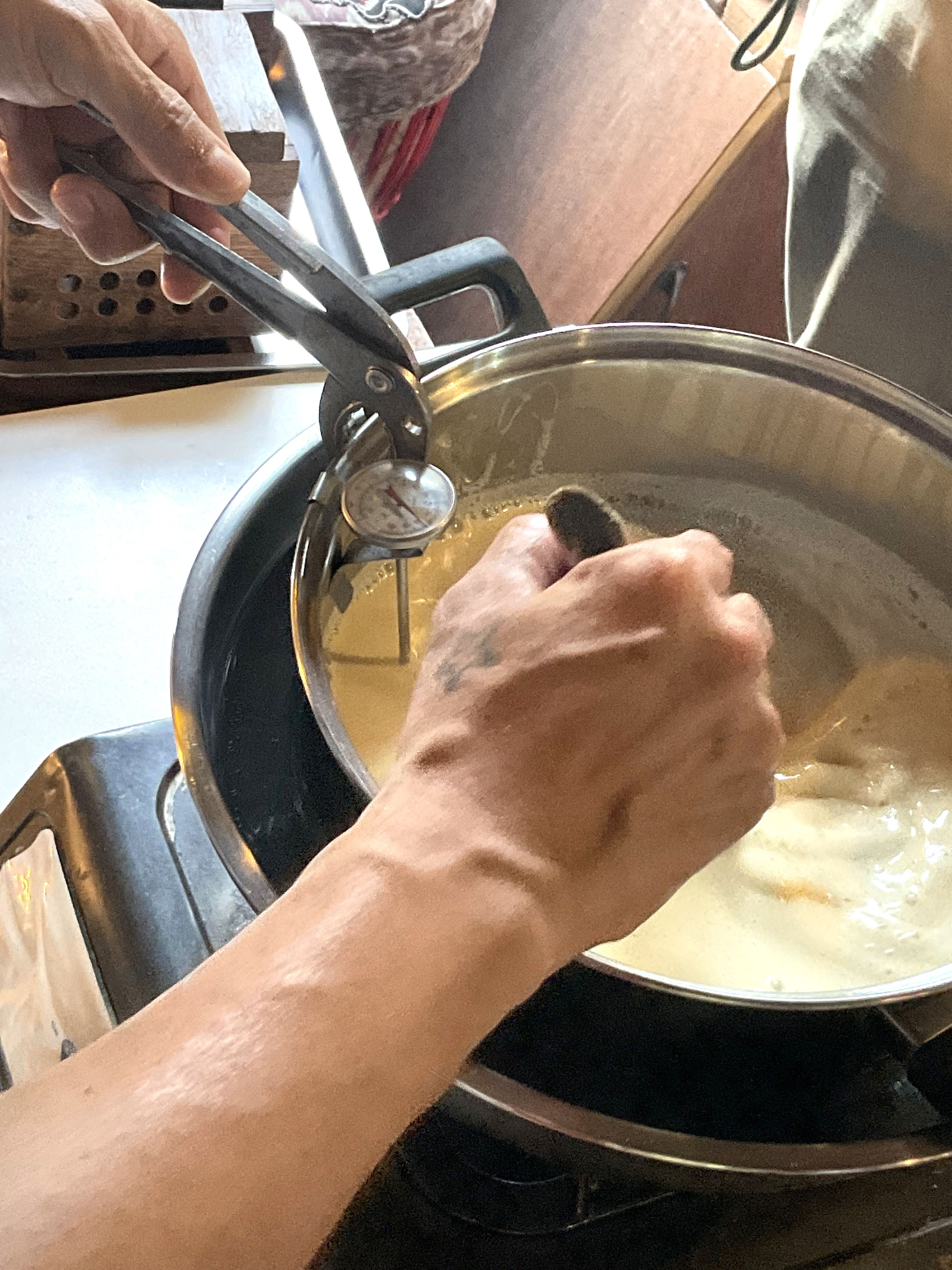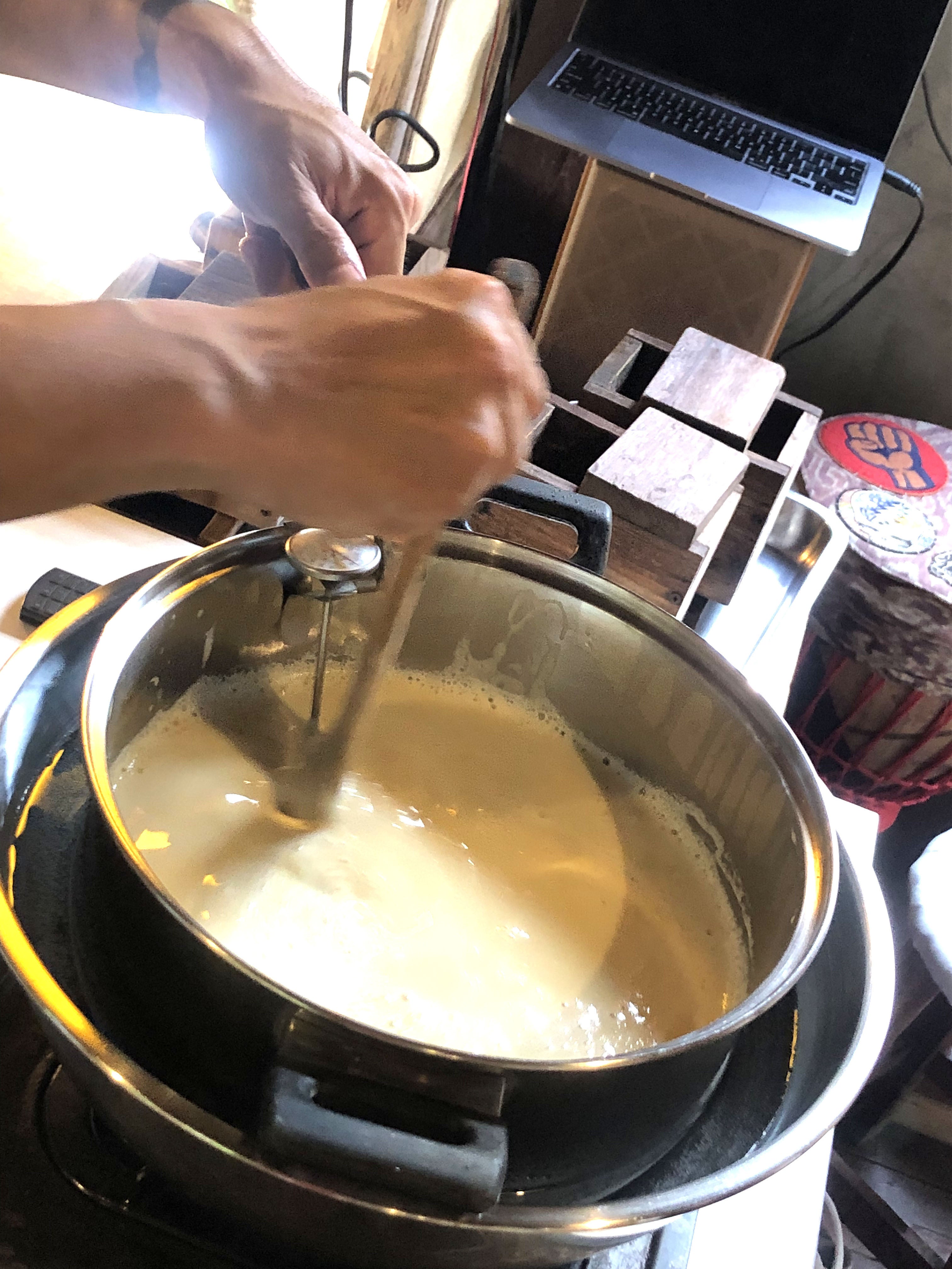 そして次は搾り取れた豆乳に,凝固剤のエプソムソルト(硫酸マグネシウム)を投入していきます▷▷▷