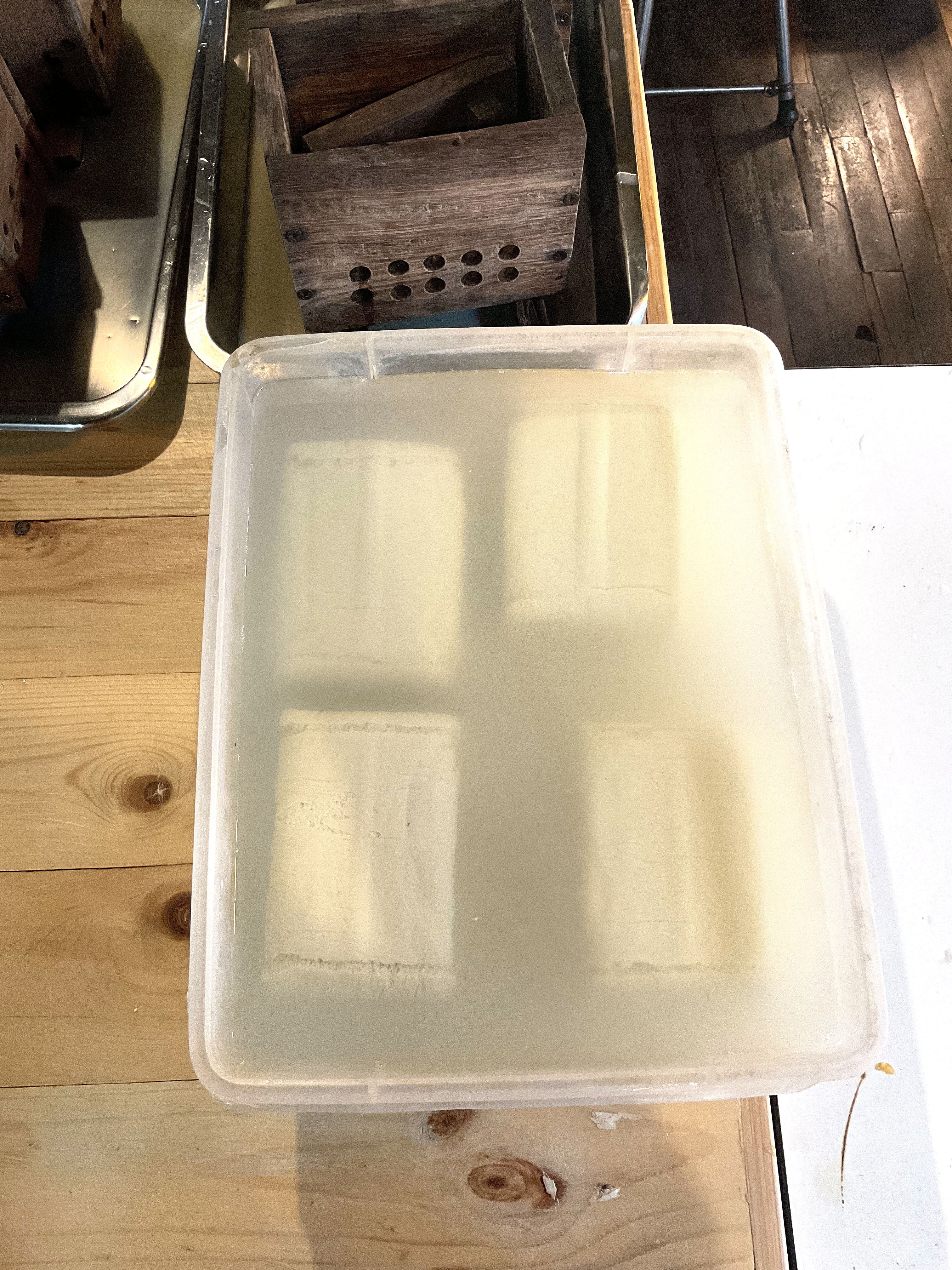 木型から冷たい水を張った容器に移していきます▷▷▷