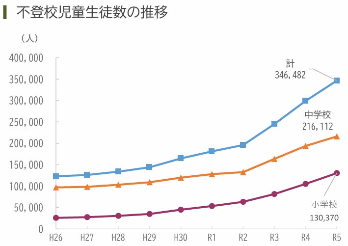 令和5年の最新のデータで、小・中学校における不登校児童生徒数は346,482人!