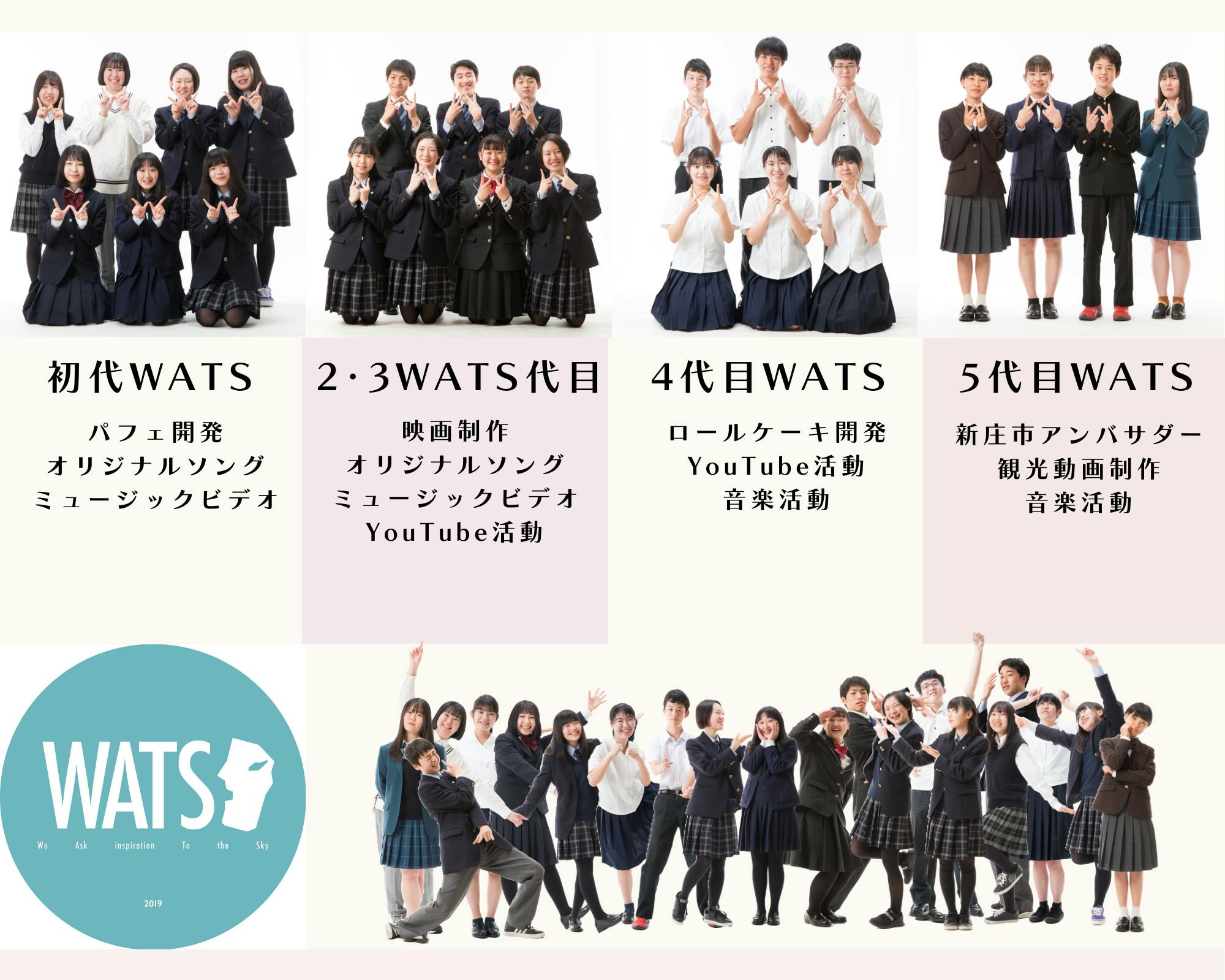 私たちは、2019年12月に山形県最上地域で「ビッグバンを起こす!」と結成された高校生地域開発チームWATSです。学校の垣根を越え、自分たちの意志で集まり、それぞれの世代でやりたいことを決め、YouTube動画制作を活動基盤として、地元の食材を使ったスイーツ開発・商品化やオリジナルミュージック・MV制作や映画制作などをおこなってきました。現在は5代目WATSとして4名のメンバーで活動しています。卒業して地元に残っている卒業メンバーや全国各地にいる卒業メンバー17名も休みの時や帰省時に私たちの活動を支援してくれてます。