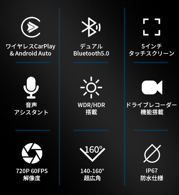 ・フロント/リアカメラ搭載でドライブレコーダーとして利用可能
