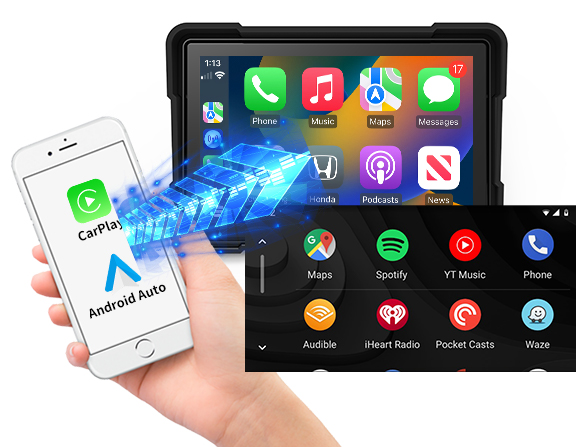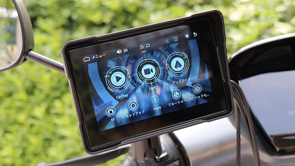 ・バイク専用ディスプレイオーディオで、CarPlay/Android Autoに対応