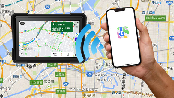 地図の更新費用は不要、お好きな地図アプリで最新の地図情報や交通情報をリアルタイムに表示できます。