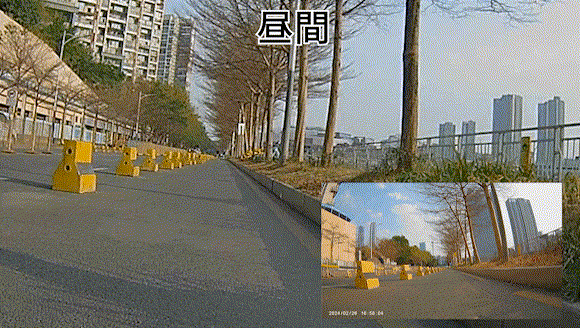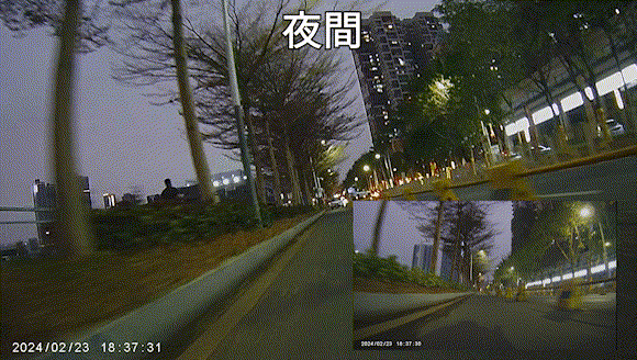 「AutoCycle」のフロント/リアカメラで、夜でも明るくバイクの前後の状況を正確に記録してくれるので、いざというときに頼りになります。