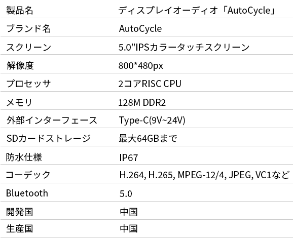 従来のTNとVAパネルは見る角度で色が変わるというデメリットあり、それを踏まえて、「AutoCycle」は5インチ全画面IPSタッチスクリーン対応で、非常に広い視野角を備えており、ほとんどの角度から画像を鮮明に見ることができ、日中の直射日光下でも見やすい鮮やかな表示を実現。