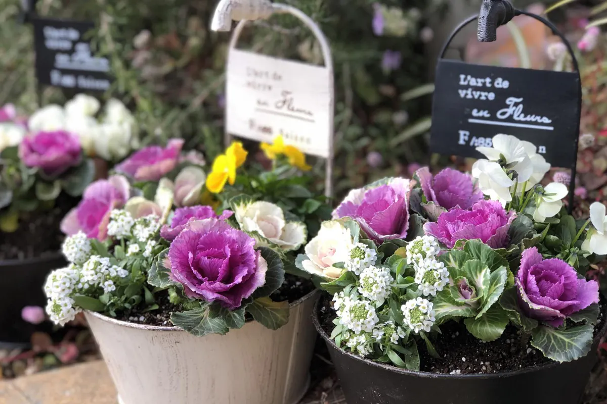 冬から春先まできれいな「葉ボタンリース寄せ植え」などなど