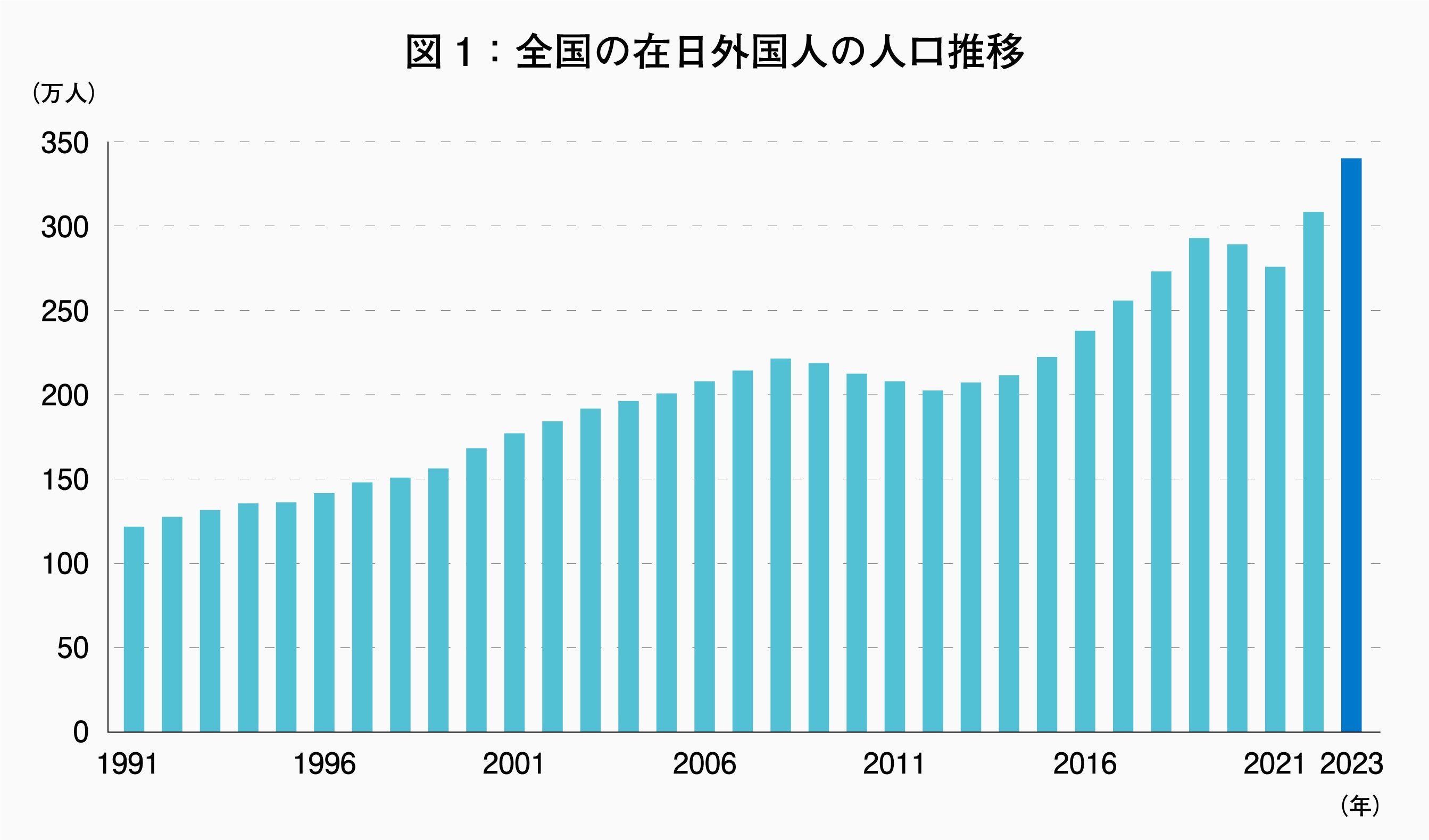 日本社会は、少子高齢化が急速に進行しており、それを補うような形で外国人人口が増大しています。企業は不足する労働力を、アジア各地からやってくる労働者に依存せざるを得ず、留学生や技能実習生としてやってきた人々を労働力の供給源としています。単純労働は受け入れないというのが政府の建前ではありますが、やがて結婚したり子どもができたりして、生活基盤を持った住民としての定住化が進んでいくことは目に見えてます。