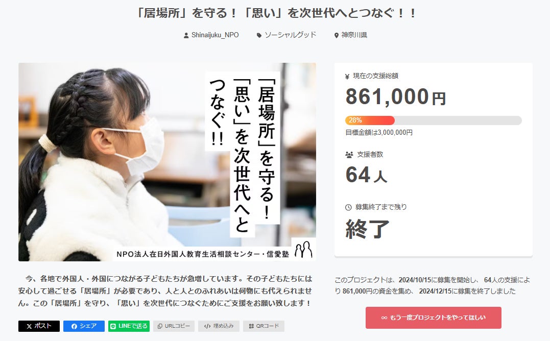 2024/10/15 12:39いよいよ始まりました!!信愛塾の初めての試みクラウドファンディング!!応援をよろしくお願い致します!! もっと見る