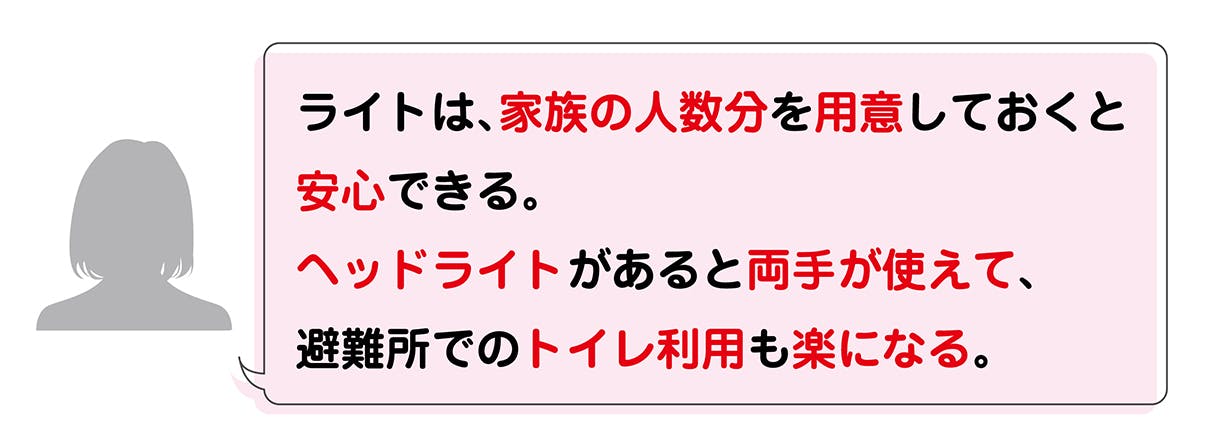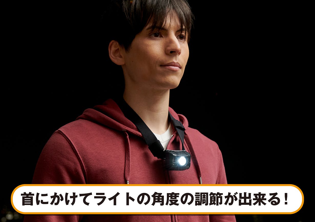 災害によって起きる停電。停電時の暗闇は、一寸先も見えず、歩くこともままならない状態になることもあります。避難の為に暗い道を歩く事は、大変危険です。買い物中だったり、仕事の鞄を持っていたり…と皆さんの状況はさまざま。ヘッドライトは頭に付けたり、首に掛けたりする事によって、ハンズフリーになります。「とっさの時に両手が自由」に使えるようにする事が大切です。