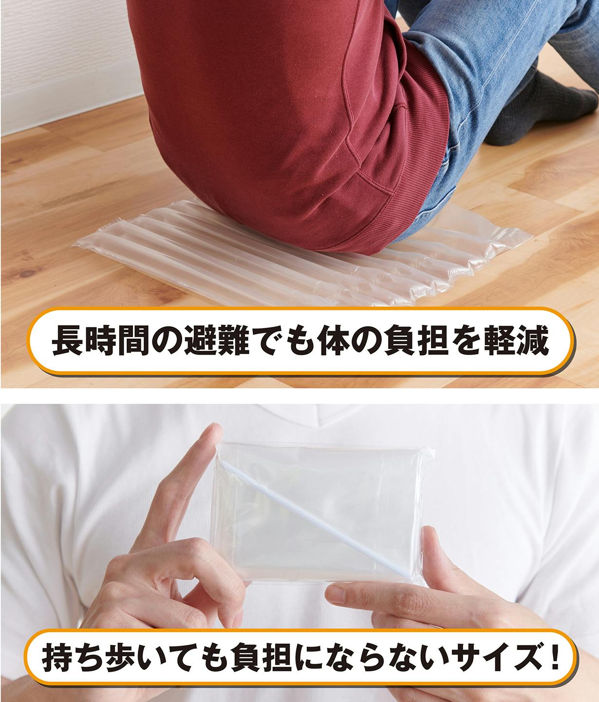 自宅のフローリングでも、お尻の下にクッションや座布団を敷きたくなりますよね。避難所は体育館なども多く使用されています。体育館の床は冷たくて堅い。長時間お尻を付けて座り続けるのは「イデデデデデ」どころじゃないかもしれません。