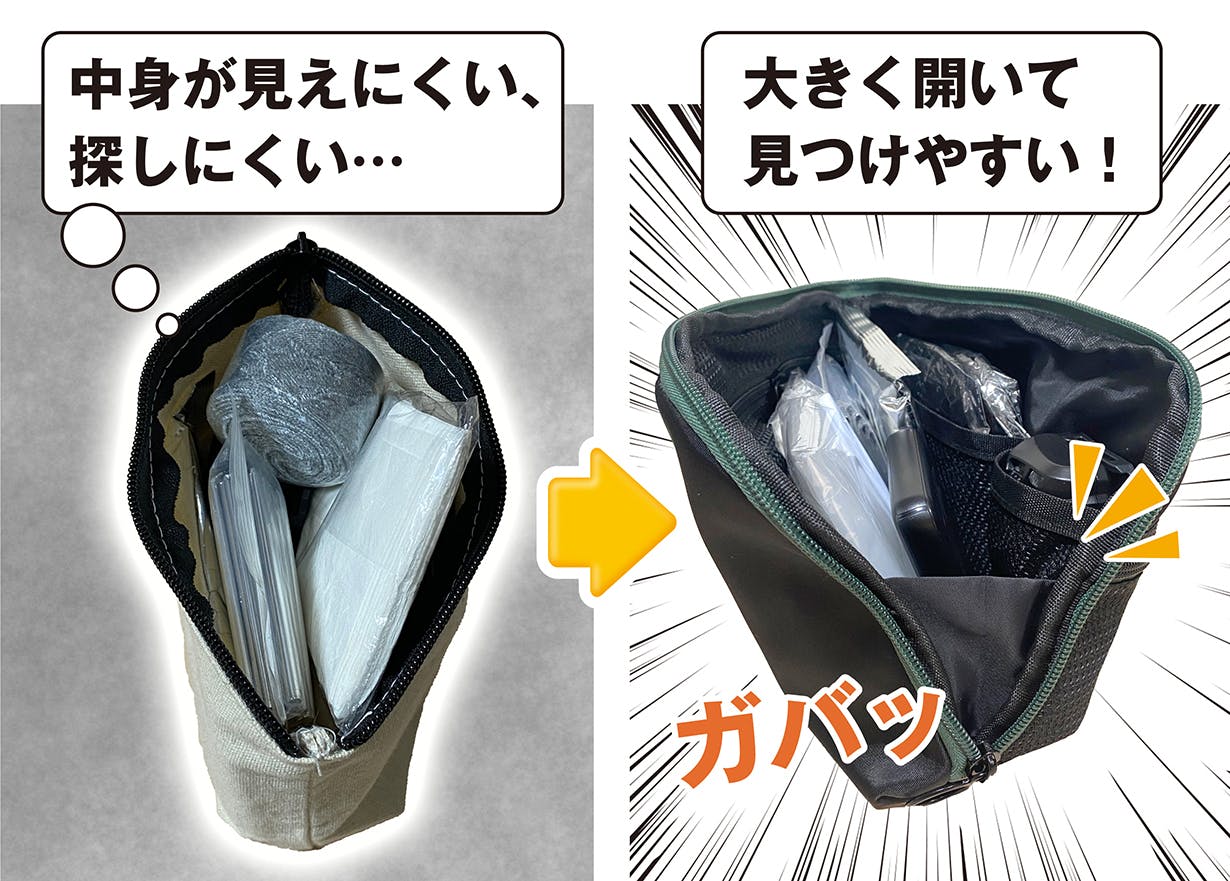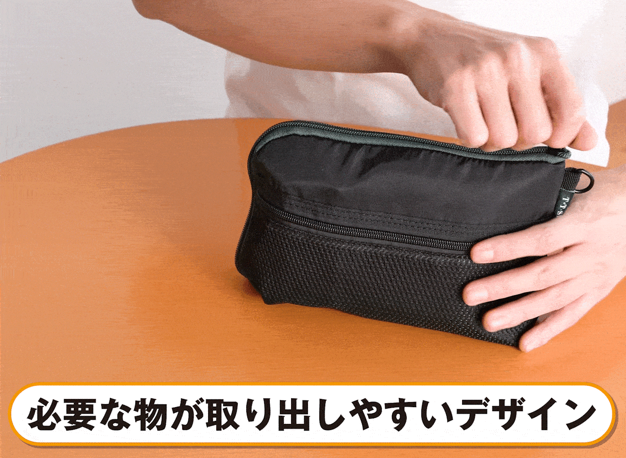 必要な物が『見つけやすい・取り出しやすい・持ち運びしやすい』に焦点を当て、オリジナルサイズでポーチのデザインを企画しました。