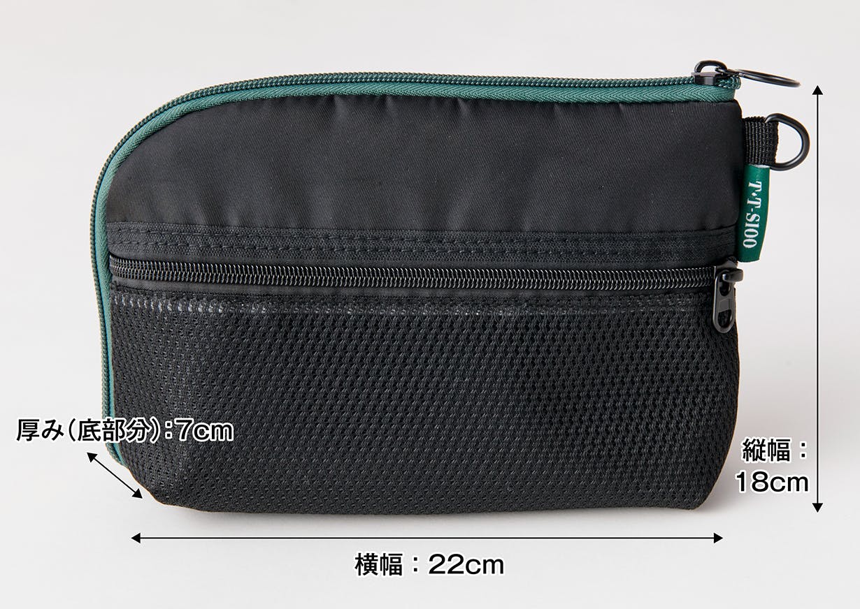 探している物がなかなか見つからない。なんて事が起きないように、ガバッと開くラウンドファスナー。そして、4つのポケットにより小さい小物が、ポーチの中でゴチャゴチャになりません。