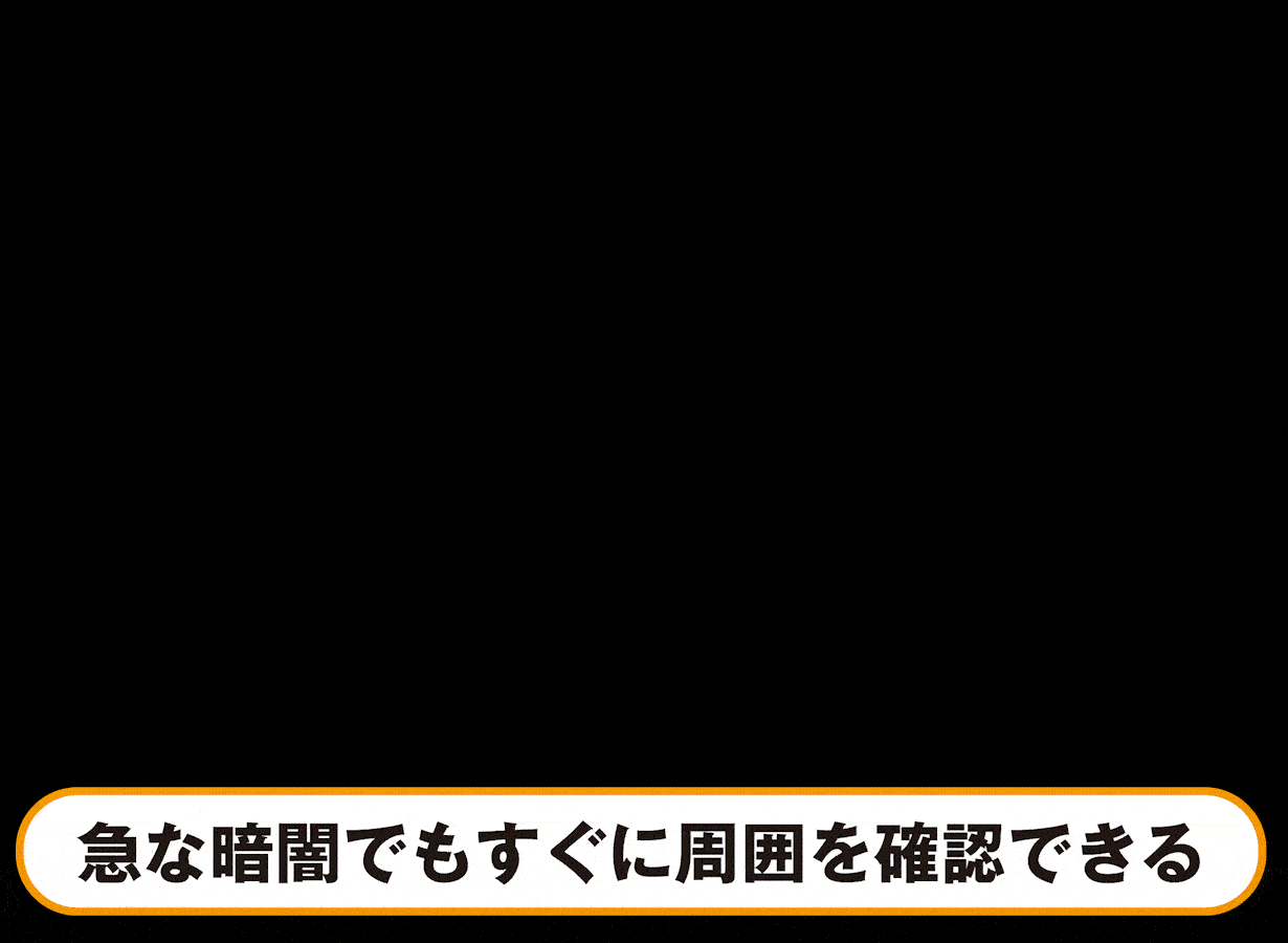 センサーモードを起動すれば、センサー部分に手をかざすだけで点灯/消灯操作が可能です。手が汚れていてスイッチが押せない時などにも、この機能はとても便利です。