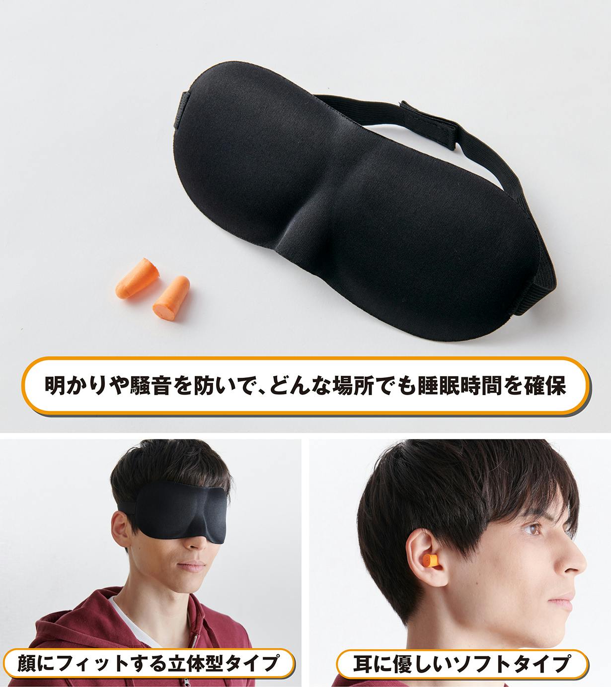 不安が募っていて眠りにくい状況の中で、睡眠をしっかりとれるかどうかは健康面に大きく影響します。避難所などでは、周囲の音も気になりしっかりと睡眠をとる事が難しくなる中で、少しでも心穏やかに睡眠がとれるように触り心地の良いアイマスクと耳栓を採用しました。