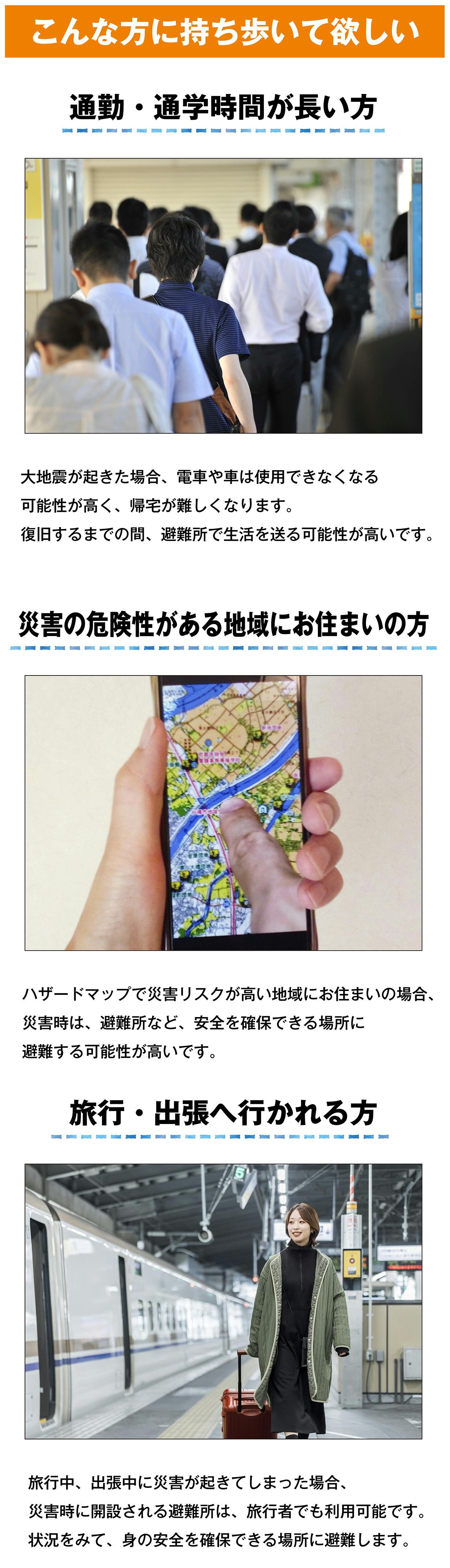 私たちLitograflのスタッフの大半が、東日本大震災の時に東京で仕事をしておりました。その時は、防災用品と言える物は何も持ち歩いておりませんでした。あの時の、交通機関に溢れる帰宅困難者の光景は今でも鮮明に覚えています。2011(平成23)年3月11日に何があったのか。覚えていない世代や、生まれていない子どもたちも増えてきました。今後、起きると言われている大地震の中の1つ、南海地震は東日本大震災の10倍の被害が出るとも言われています。そんな不安な思いがある中で、防災キットIRETOKOが皆さまの「万が一の時の備え」になれるようスタッフ一同、願っております。