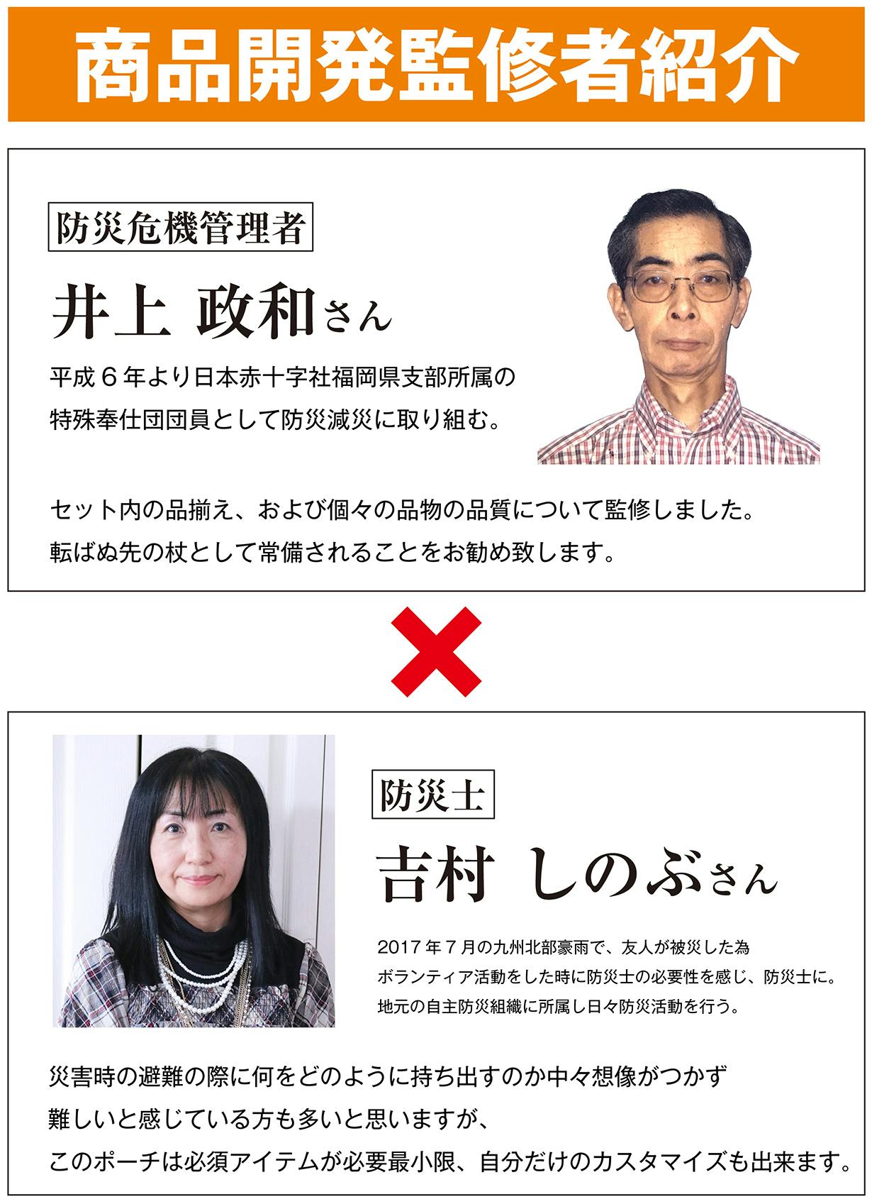 「何が必要か分からない」「どんな種類の物を持てば良いか分からない」そんな方の為にも、防災士の方や危機管理者の方に監修して頂き、災害後「何が必要か」を考えました。