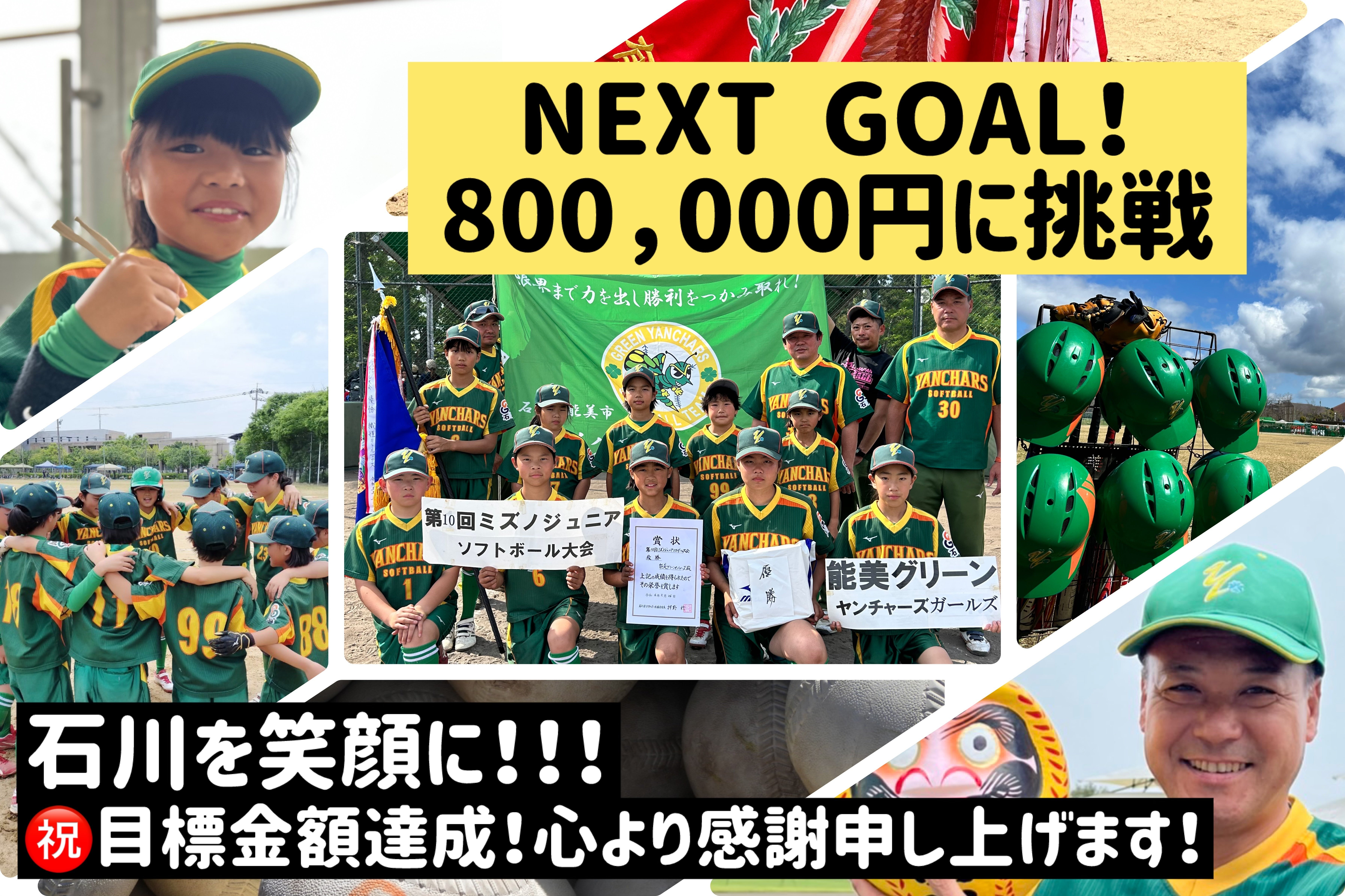 5月31日にクラウドファンディングを立ち上げさせて頂き、本日24日目のAM11時52分、なんと!目標金額 50万達成する事が出来ました!我々の想像を超えるご支援、そして、募集期限を待たずに達成させて頂き、応援、ご支援して頂いた全ての皆様に心より感謝申し上げます。当初の目標金額は、全国大会にかかる交通費、宿泊費、大会活動費とさせて頂きます。選手、指導者は、全国大会に向けて、身を引き締めて、日々の練習を頑張っています。そこで、全国大会の最終調整として、7月に強化試合に参加することにしました。つきましては、強化試合にかかる交通費、宿泊費、活動費用の30万をNEXTGOALで挑戦させて頂く事を皆様にご報告致します!引き続き、能美グリーンヤンチャーズガールズのご協力とご支援、更にSNSの拡散のお手伝いよろしくお願いいたします。