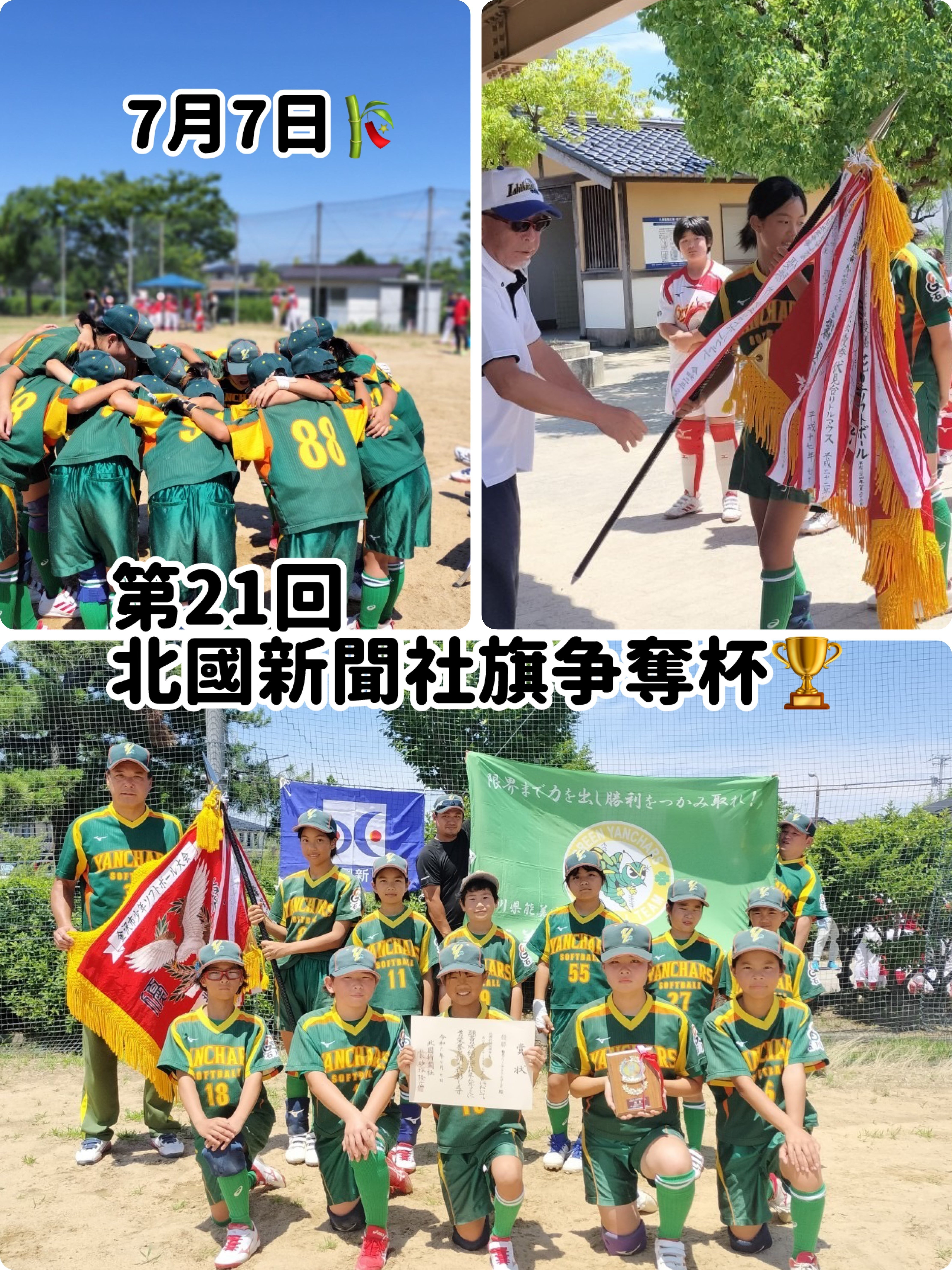 先週雨で延期になりました、第21回北國新聞社旗争奪杯が、7月7日 猛暑日のなか、無事開催されました!能美グリーンヤンチャーズガールズなんと、、優勝しました!!選手、指導者、サポーターの皆んなで一致団結した結果でした!大会主催の関係者様皆様、暑い中、朝早くから準備頂き、本当にありがとうございました。皆様のお陰で、ソフトボール大会に参加出来ました!全国大会まで、あと、3週間。クラウドファンディングに挑戦させて頂き、残り14日。皆様のご支援に心より感謝致します。ネクストゴールに向けて、まだまだ挑戦中です!引き続きご支援の程、よろしくお願い申し上げます。