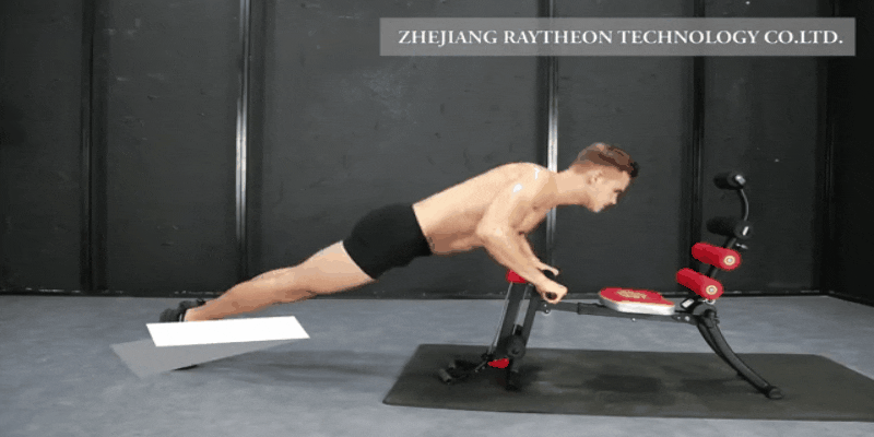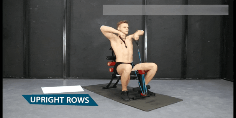 これまでベンチ型のトレーニングマシンは腹筋がトレーニングの中心でしたが、ローイングバンドが付いているので上半身の筋力トレーニングもすることができます。