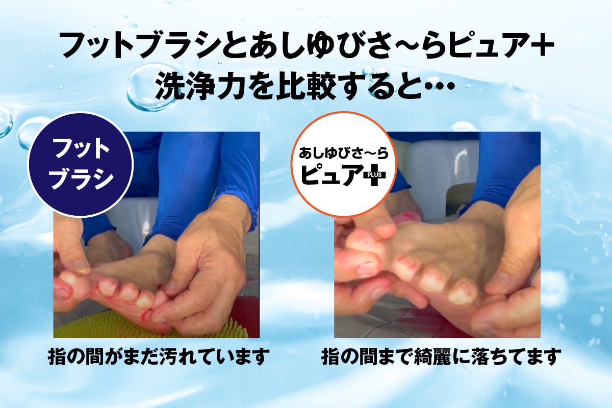 フットブラシとあしゆびさ〜らピュア+洗浄効果比較を動画で!