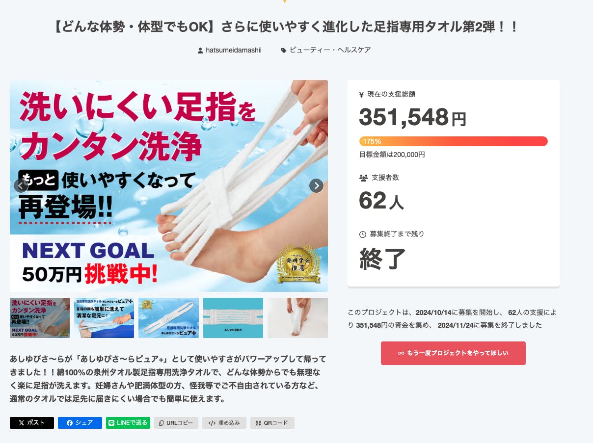 この度は、クラウドファンディングプロジェクト「あしゆびさ〜らピュア+」にご支援いただき、誠にありがとうございました。皆様のおかげで、無事に目標を達成することができました。